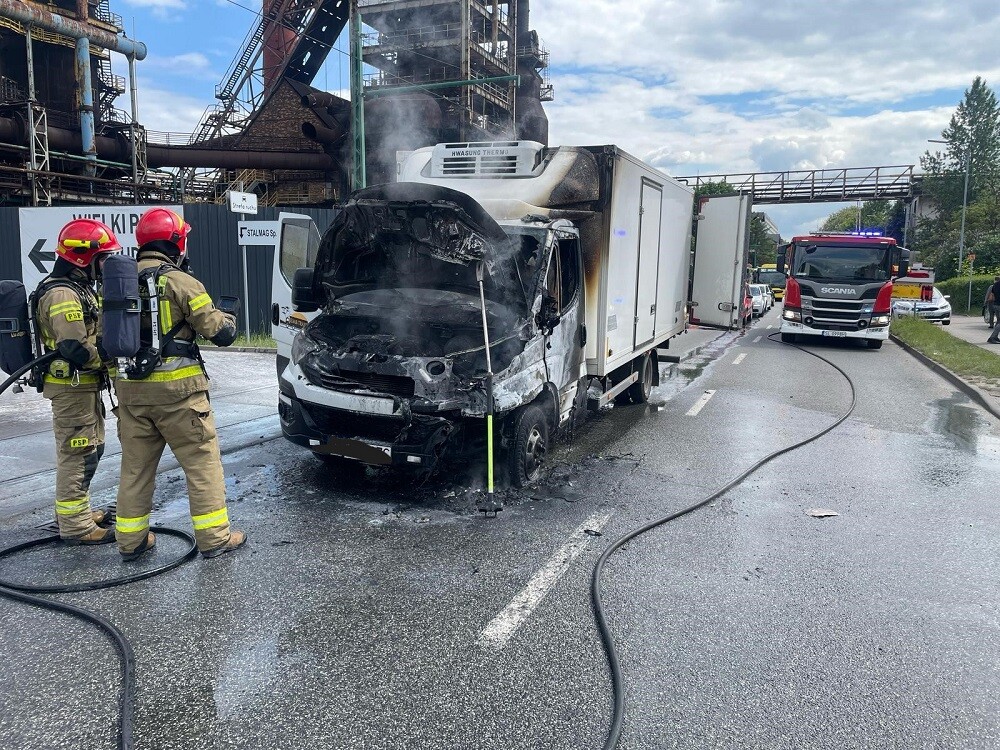 Dziś, około godziny 14:15, Komenda Miejska Państwowej Straży Pożarnej w Rudzie Śląskiej otrzymała zgłoszenie o pożarze samochodu dostawczego przy ul. Niedurnego, na wysokości Huty Pokój. Strażacy bardzo szybko opanowali płomienie, a obecnie trwa dogaszanie pojazdu.