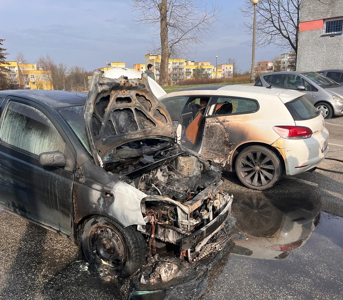 - W tym momencie nie znamy przyczyny pożaru. Nasze działania są zakończone, trwa dogaszanie samochodów, szczególnie komory silnika spalonego pojazdu - informuje st. kpt. Maciej Małczak, Oficer Prasowy PSP Ruda Śląska.