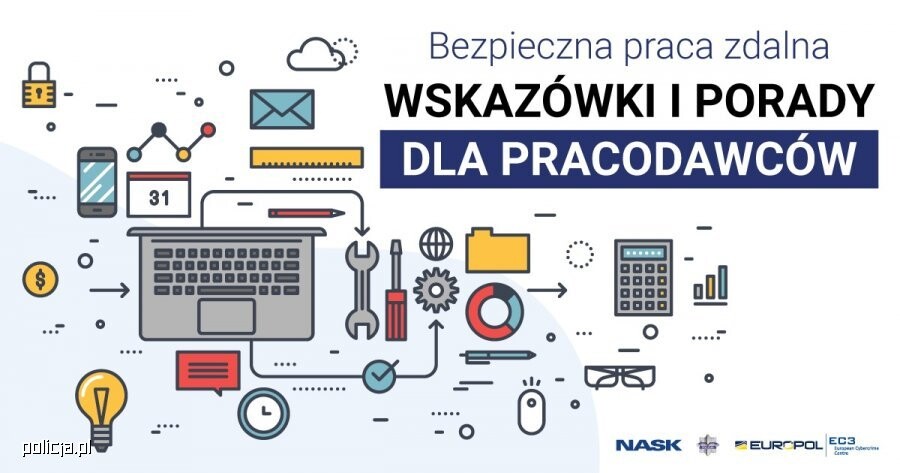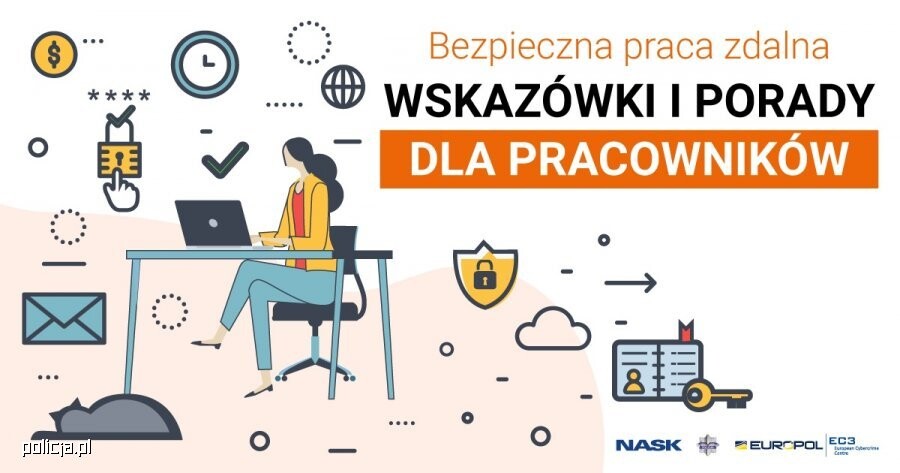Ścisła współpraca Biura dw. z Cyberprzestępczością Komendy Głównej Policji, NASK ¹ oraz Europol-u ² zaowocowała kolejną kampanią na rzecz przypomnienia i zwrócenia uwagi na wyzwania, oraz zagrożenia, które mogą wystąpić w trakcie wykonywania pracy za pośrednictwem elektronicznych środków komunikacji.