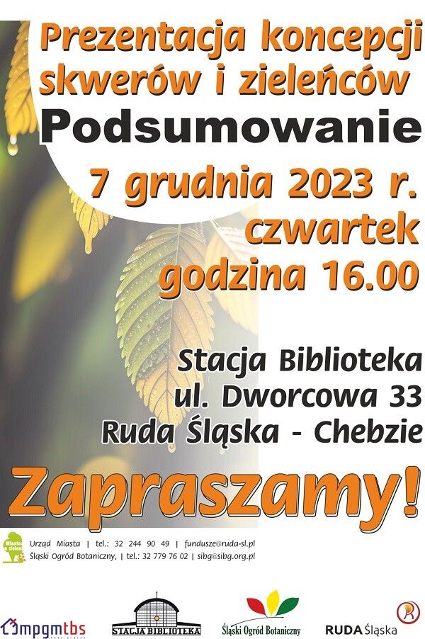 7 grudnia o godz. 16:00 w Stacji Biblioteka przy ul. Dworcowej 33 zaprezentowane zostaną koncepcje zagospodarowania 12 terenów zielonych w Rudzie Śląskiej.