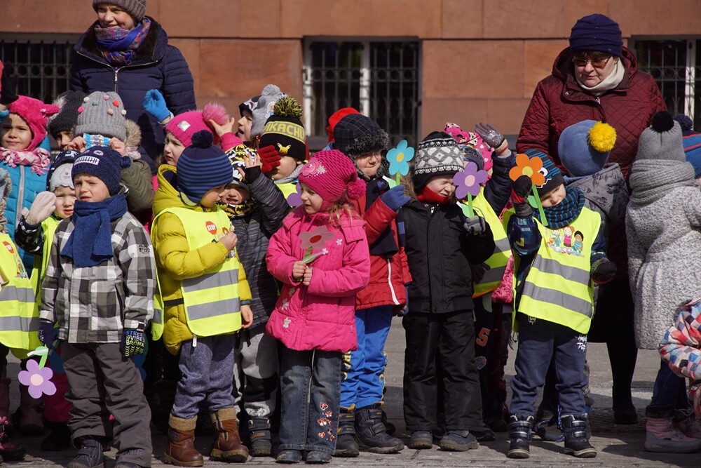 Przedszkolaki z różnych rudzkich przedszkoli przywitały dzisiaj wiosnę na nowobytomskim rynku. Dzieci przygotowały papierowe kwiaty, które rozdawały rano mieszkańcom Rudy Śląskiej. Przemaszerowały wraz z opiekunami w kolorowym pochodzie głośno nawołując wiosnę.