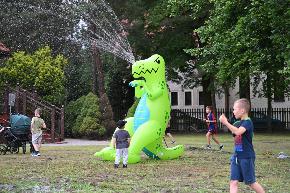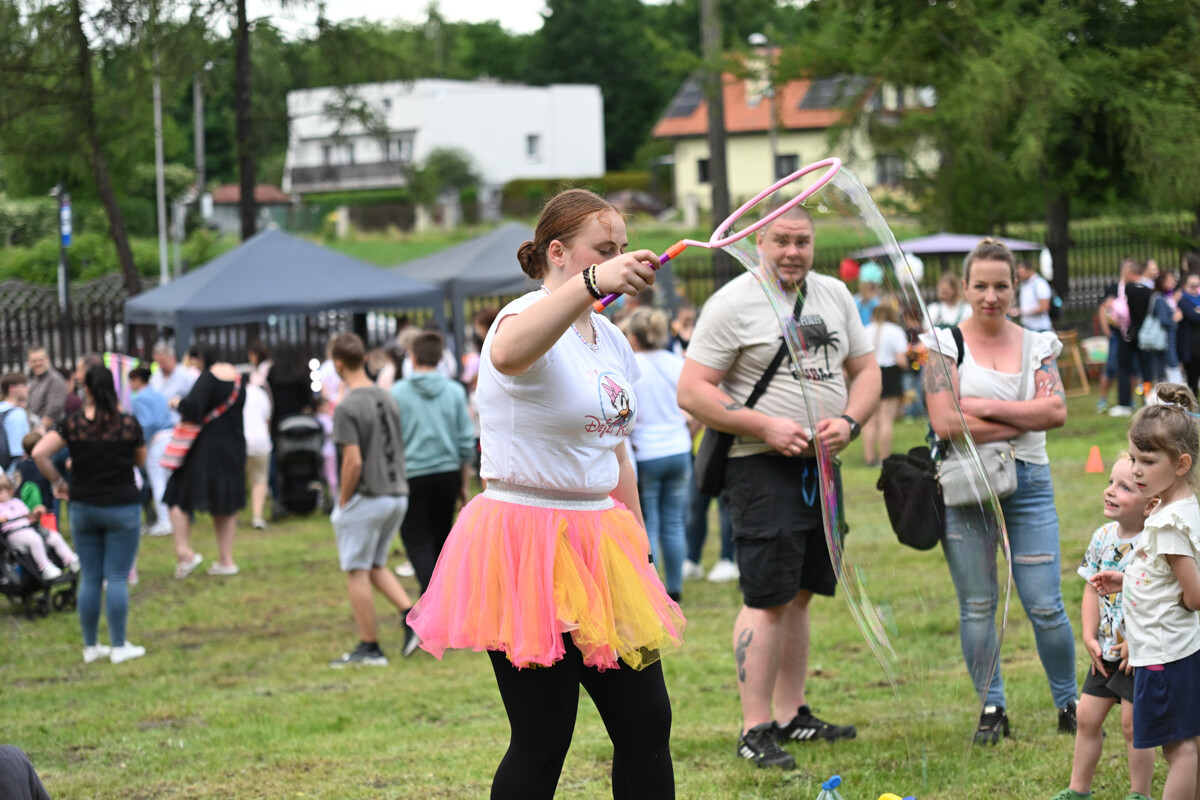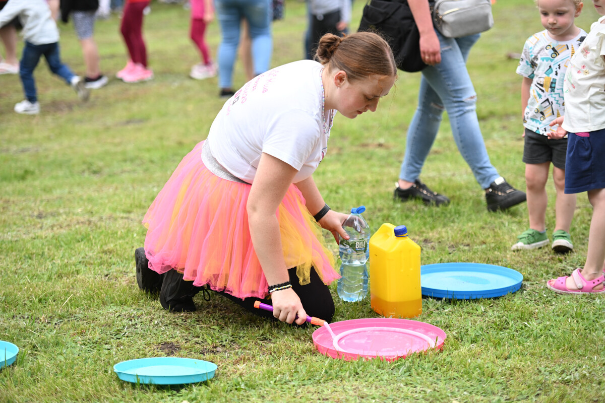 Na najmłodszych czekało mnóstwo atrakcji – od klasycznych dmuchanych zjeżdżalni, przez malowanie twarzy, strzelnicę, kącik muzyczny, po zawody Hobby Horse i spotkanie z... dinozaurem. Nie zabrakło też warsztatów z koralików, łowienia rybek, malowania odlewów, wożenia taczką i oczywiście – bańek mydlanych!