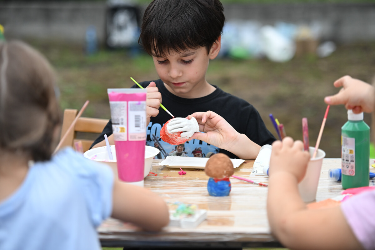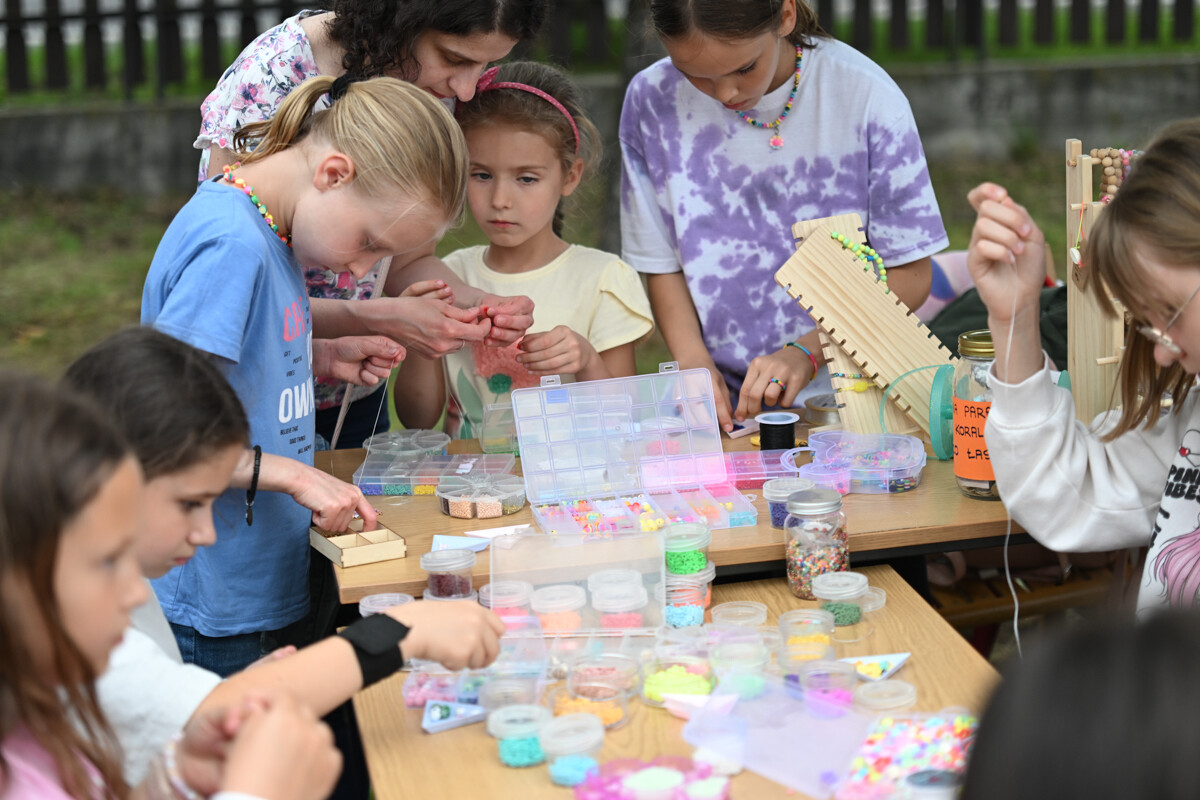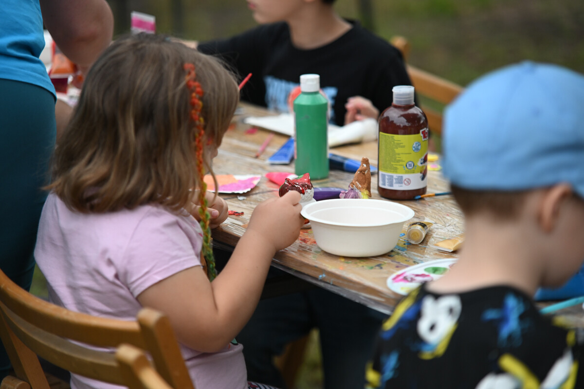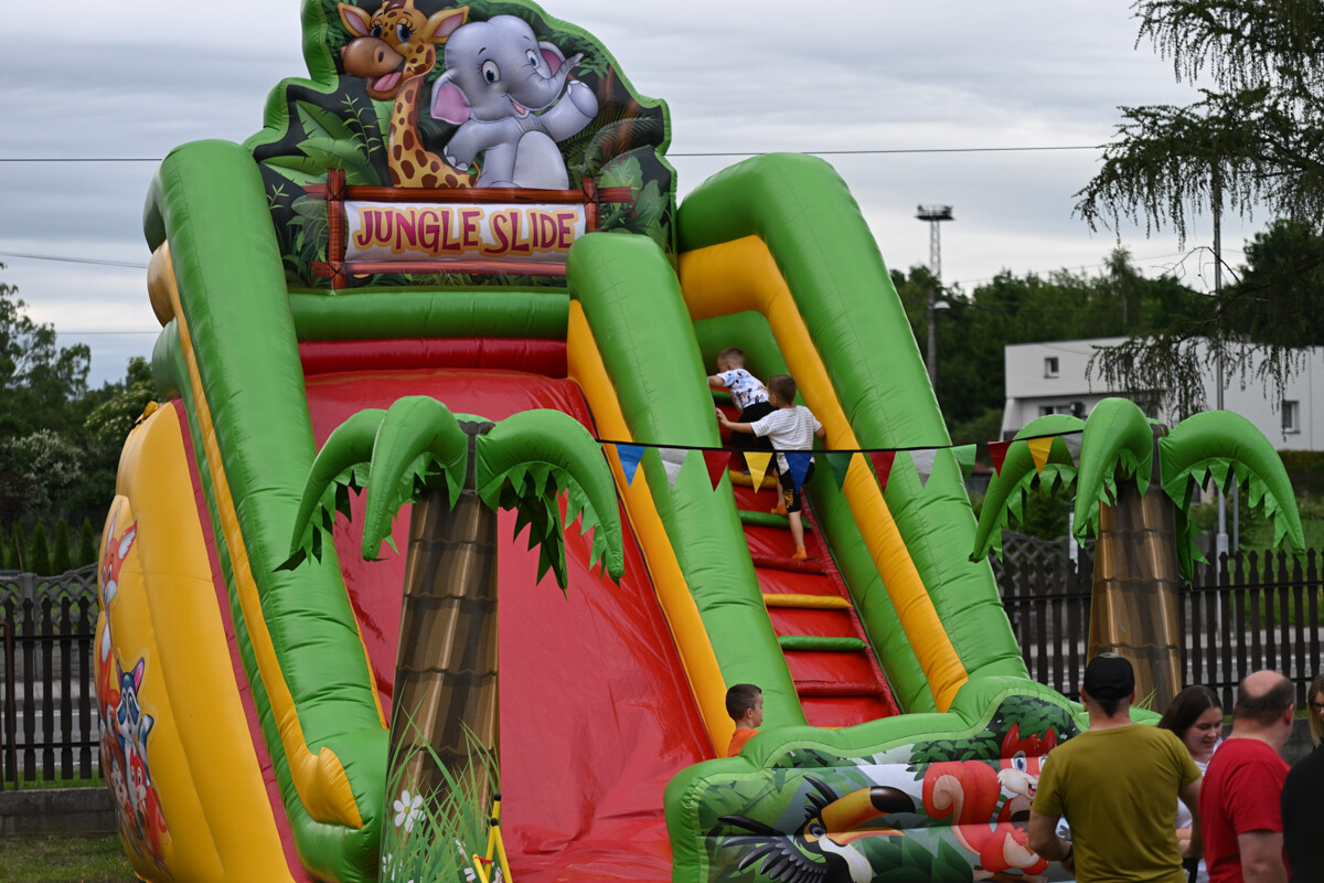 Na najmłodszych czekało mnóstwo atrakcji – od klasycznych dmuchanych zjeżdżalni, przez malowanie twarzy, strzelnicę, kącik muzyczny, po zawody Hobby Horse i spotkanie z... dinozaurem. Nie zabrakło też warsztatów z koralików, łowienia rybek, malowania odlewów, wożenia taczką i oczywiście – bańek mydlanych!