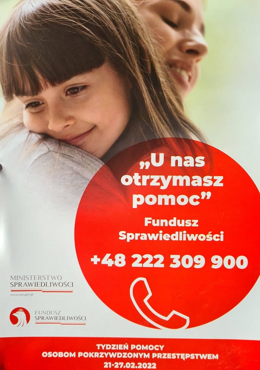 Tegoroczny „Tydzień Pomocy Osobom Pokrzywdzonym Przestępstwem” odbędzie się w dniach od 21 do 27 lutego. Każda zainteresowana osoba będzie mogła w tym czasie uzyskać bezpłatną poradę prawną i psychologiczną m.in. w sądach, prokuraturach, komendach policji, siedzibach prawniczych samorządów zawodowych czy organizacji pozarządowych w całym kraju. Projekt koordynuje Ministerstwo Sprawiedliwości w związku z obchodzonym 22 lutego Dniem Ofiar Przestępstw.