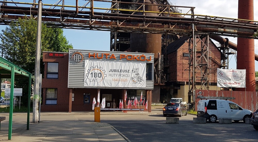 Atmosfera protestu w Hucie Pokój w Rudzie Śląskiej! Związkowcy NSZZ "Solidarność" i WZZ "Sierpień 80" oflagowali zakład. Wydali też oświadczenie. pic.twitter.com/fv2dYmkCfc