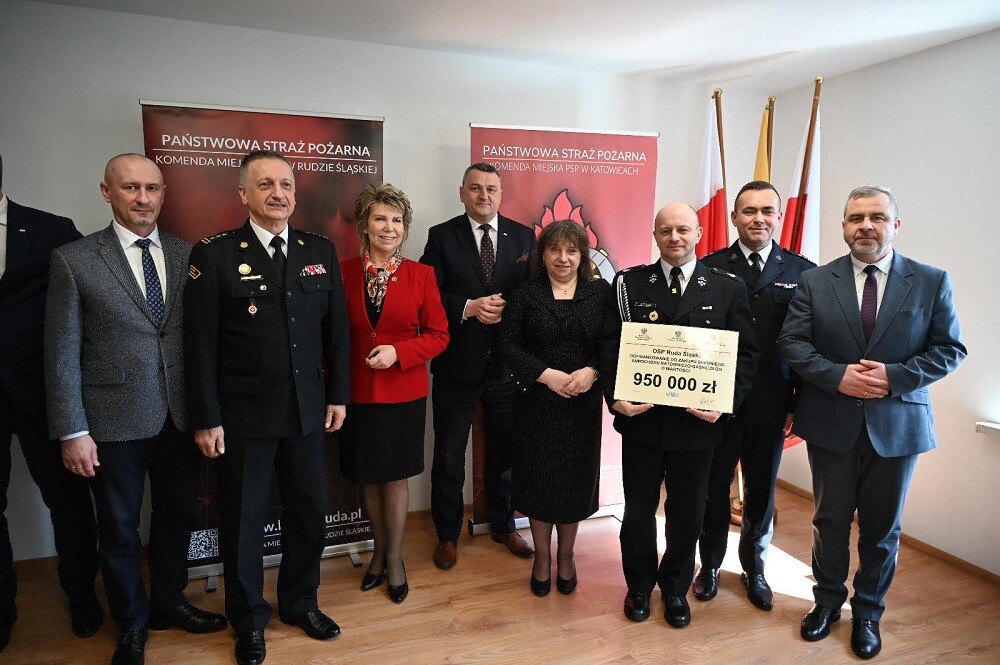 - Serdecznie dziękuję komendantowi st. bryg. Andrzejowi Małysiakowi za zaproszenie na uroczystość wręczenia promes na samochody dla Ochotniczej Straży Pożarnej w Rudzie Śląskiej. Ochotnicze Straże Pożarne dbają o nasze bezpieczeństwo każdego dnia. Istotne by druhowie mieli odpowiedni sprzęt, który pomoże im szybko dotrzeć na miejsce wypadku czy pożaru, dlatego cieszę się, że 57 wozów strażackich trafi na Śląsk, w tym do Rudy Śląskiej i Katowic – podkreślił Marek Wesoły.