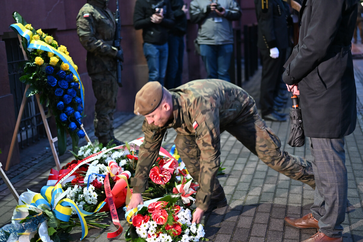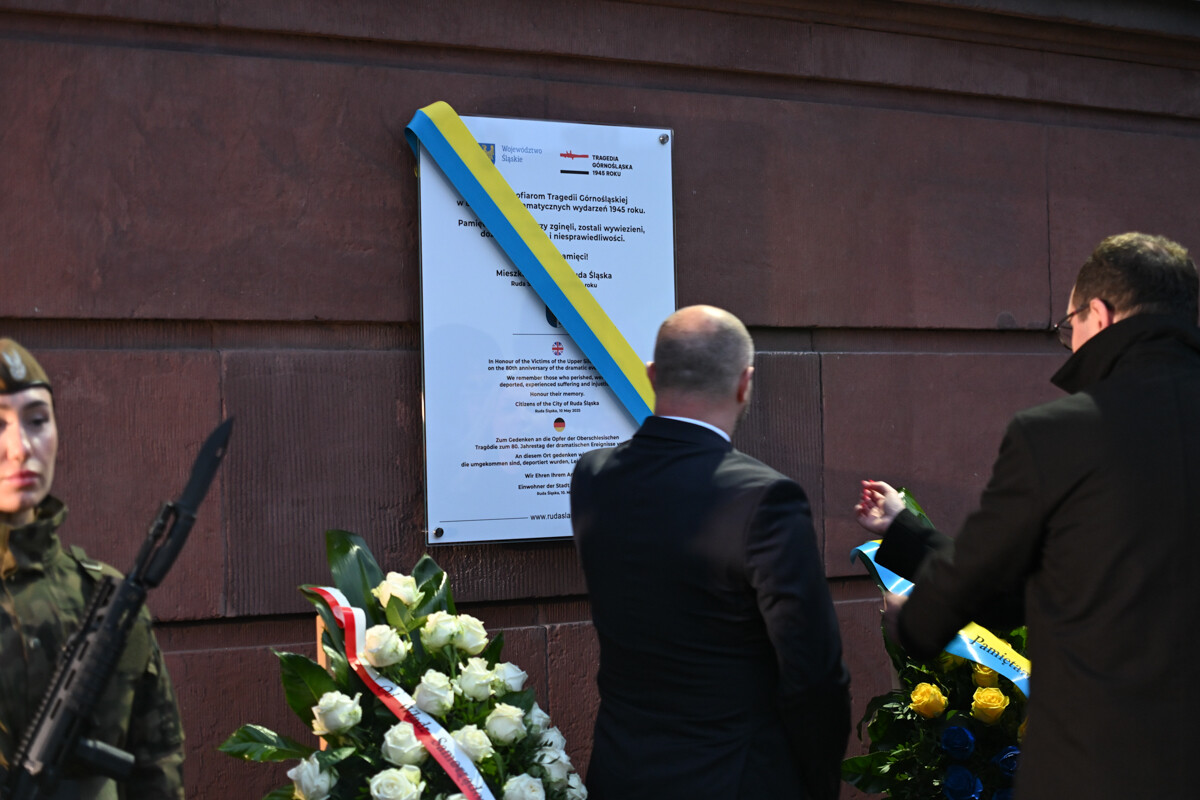 Na zakończenie uroczystości odsłonięto tablicę pamiątkową na fasadzie budynku Urzędu Miasta, poświęconą 80. rocznicy Tragedii Górnośląskiej.