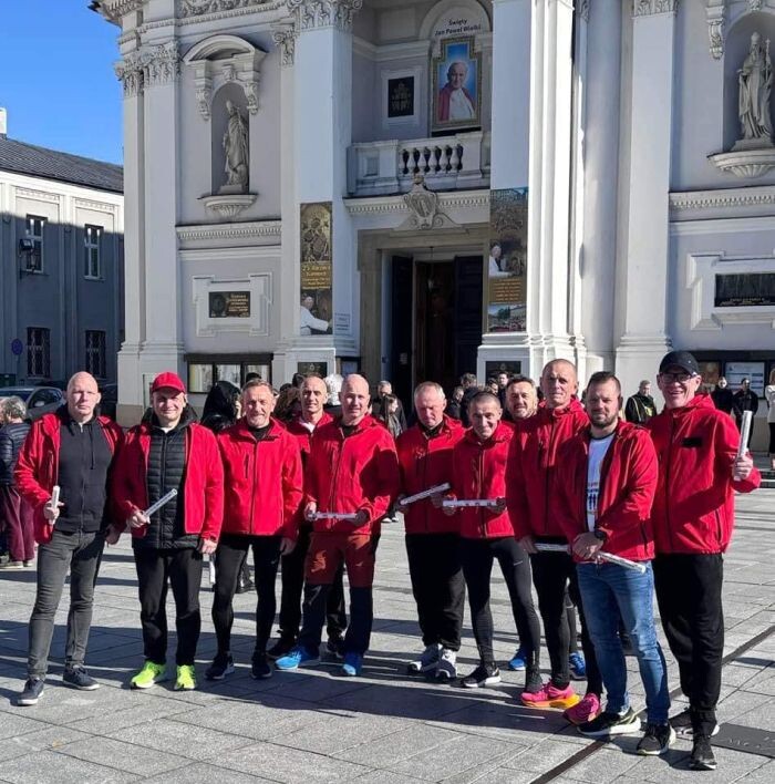 Za nami XXXVI Śląska Pielgrzymka Biegowa, rokrocznie organizowana przez Klub Rekreacyjno-Sportowy TKKF „Jastrząb” Ruda Śląska. Celem biegowej wyprawy były Wadowice, rodzinne miasto Karola Wojtyły. W ten sposób grupa biegaczy chciała uczcić 46. rocznicę wyboru Jana Pawła II na papieża. Pielgrzymka rozpoczęła się w niedzielę, 13 października, od Mszy Świętej w kościele św. Pawła Apostoła w Rudzie Śląskiej. Sztafetowa trasa przebiegała w tym roku przez Sandomierz, gdzie przy Bazylice Katedralnej biegaczy powitali burmistrz Paweł Niedźwiedź oraz radny Alex Szczyrba. Pielgrzymka dotarła do Wadowic 16 października, w Dzień Papieski, po przebiegnięciu 452 kilometrów!