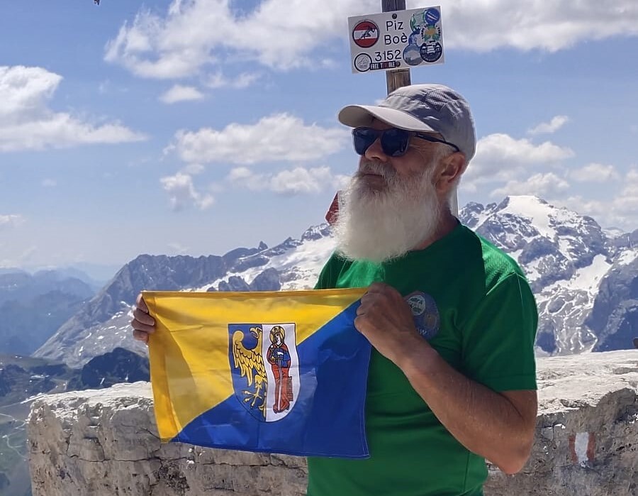 Na zdjęciach zrobionych na zdobytych szczytach często pozuje Pan z flagą w barwach naszego miasta!