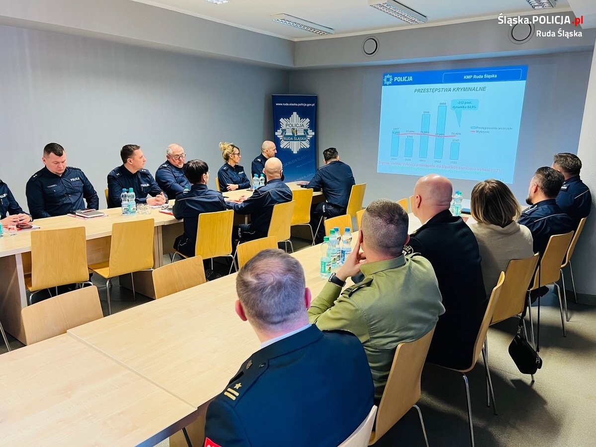W Komendzie Miejskiej Policji w Rudzie Śląskiej odbyła się narada podsumowująca wyniki pracy mundurowych w 2023 roku. W naradzie uczestniczył Prezydent Rudy Śląskiej, Przewodniczący Rady Miejskiej, kierownictwo rudzkiej komendy, komendanci komisariatów, naczelnicy wydziałów oraz zaproszeni goście. Podczas narady omówiono wyniki pracy osiągnięte w minionym roku oraz cele i założenia na rok bieżący.