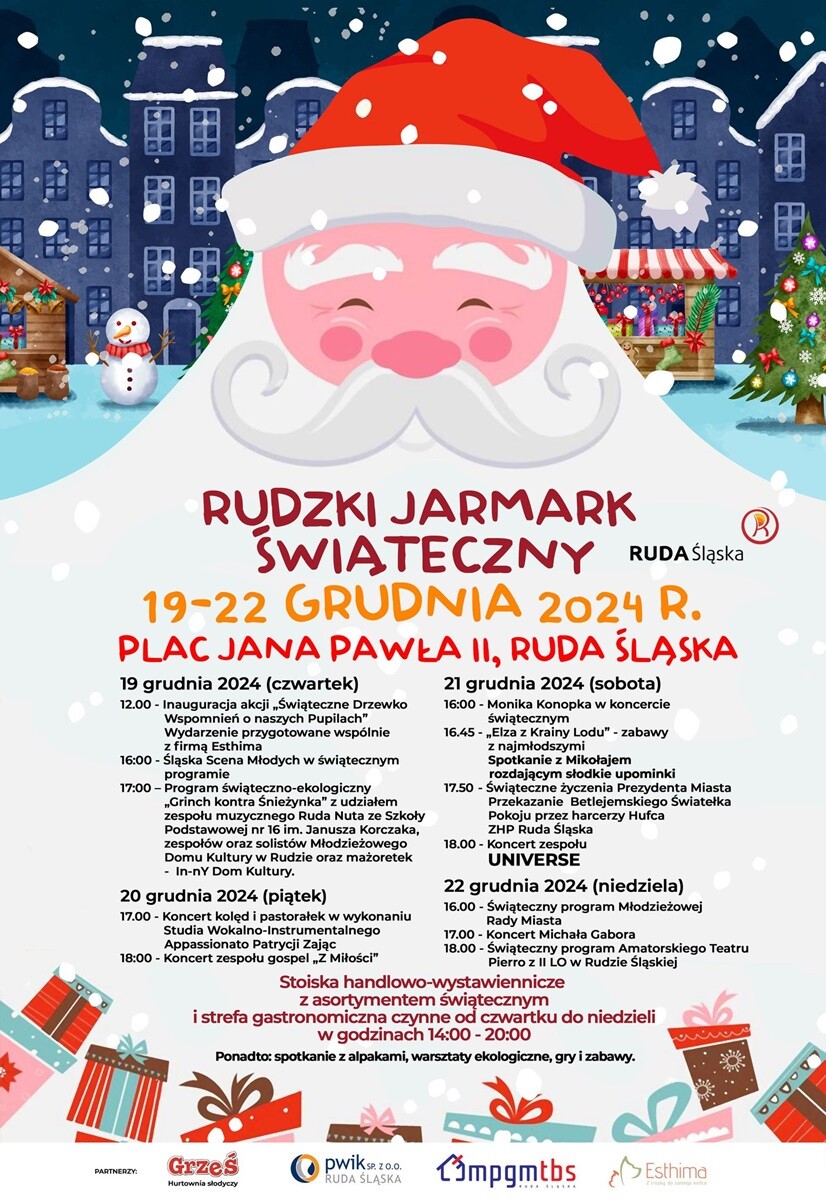 Występ zespołu Universe oraz Michała Gabora, warsztaty artystyczne, występy dzieci i młodzieży oraz spotkanie ze św. Mikołajem – to atrakcje, jakie m.in. czekają na mieszkańców podczas tegorocznego Rudzkiego Jarmarku Świątecznego, który rozpocznie się 19 grudnia (czwartek). Wydarzenie tradycyjnie zorganizowane zostanie na Placu Jana Pawła II i potrwa cztery dni do niedzieli 22 grudnia.