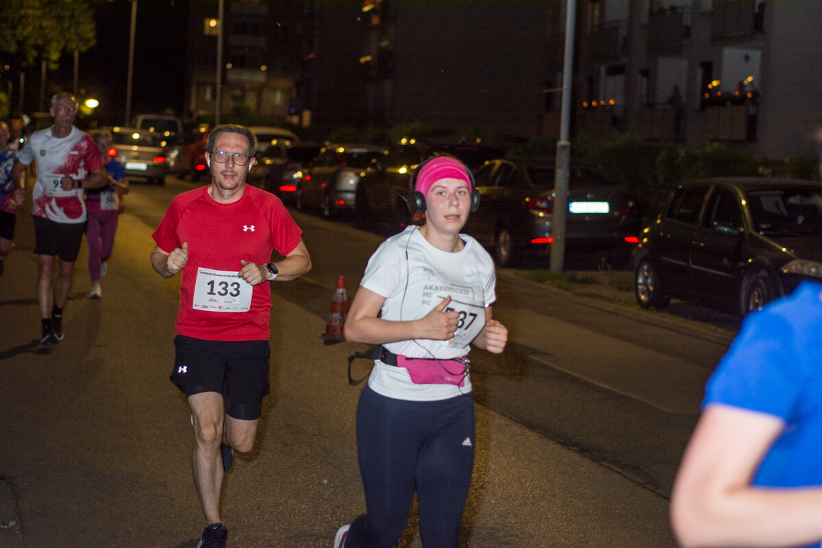 Start biegu, tak jak w roku ubiegłym, odbył się przy ul. Czarnoleśnej, z płyty stadionu lekkoatletycznego. Trasa przebiegała między innymi ulicami 1 Maja, Zabrzańską, Niedurnego, a uczestnicy mijali takie obiekty jak zabytkowy dworzec w Chebziu, osiedle Kaufhaus czy wielki piec. O ile dla Rudzian to zwykle “codzienność”, to dla uczestników spoza naszego miasta industrialny szlak był nie lada atrakcją.