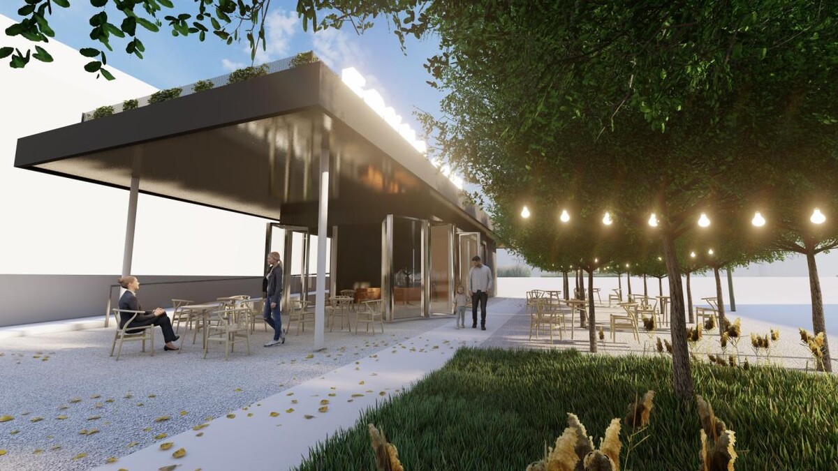 W południowej części rynku, wzdłuż zielonej skarpy zaprojektowano strefę gastronomiczną i rekreacyjną. Po obu stronach wspomnianej fontanny powstaną pawilony gastronomiczne z ogródkami zewnętrznymi. Oba budynki będą częściowo przeszklone na całej wysokości. W pawilonach zlokalizowane będą również publiczne toalety.