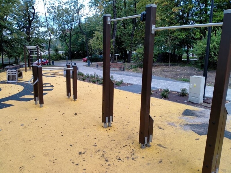 Skwer przy ul. Tuwima w Wirku pięknieje! Na finiszu jest już montaż siłowni zewnętrznej oraz tyrolki. Postęp robót przy tej inwestycji jest widoczny gołym okiem. Zadania te realizowane są w ramach II etapu budowy Traktu Rudzkiego.
