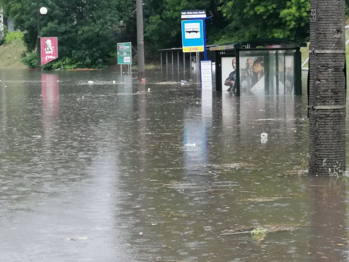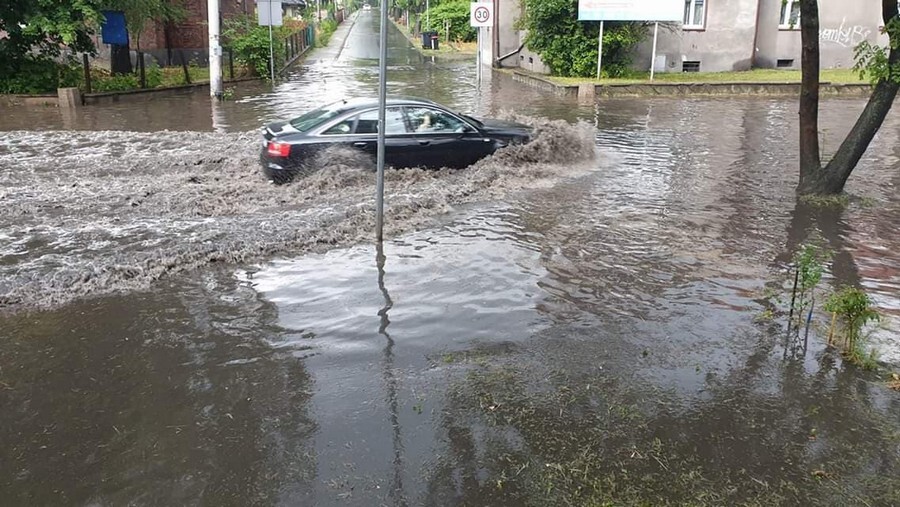 Gwałtowne oberwania chmur nad całym regionem spowodowały podtopienia i zamieniły część ulic w potoki! Występują ogromne utrudnienia w ruchu.