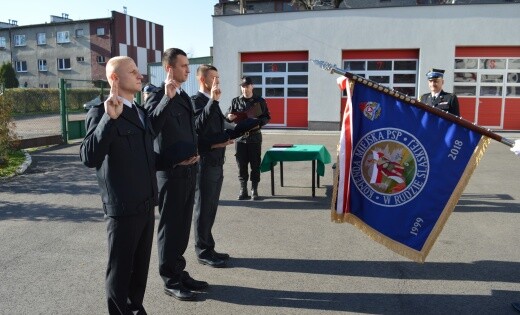 Podczas uroczystej zbiórki Komendant Miejski PSP w Rudzie Śląskiej mł. bryg. Andrzej Małysiak przyjął ślubowanie od nowych kandydatów do służby w Państwowej Straży Pożarnej. Ślubowanie to odbyło się po raz pierwszy w naszej jednostce na sztandar Komendy Miejskiej Państwowej Straży Pożarnej w Rudzie Śląskiej. Po przyjęciu ślubowania zostały nadane pierwsze stopnie służbowe oraz mianowania na stanowisko stażysty. Na zakończenie Komendant podsumowując, podkreślił istotę służby ze szczególnym uwzględnieniem poświęcenia w ratowaniu życia i mienia człowieka.