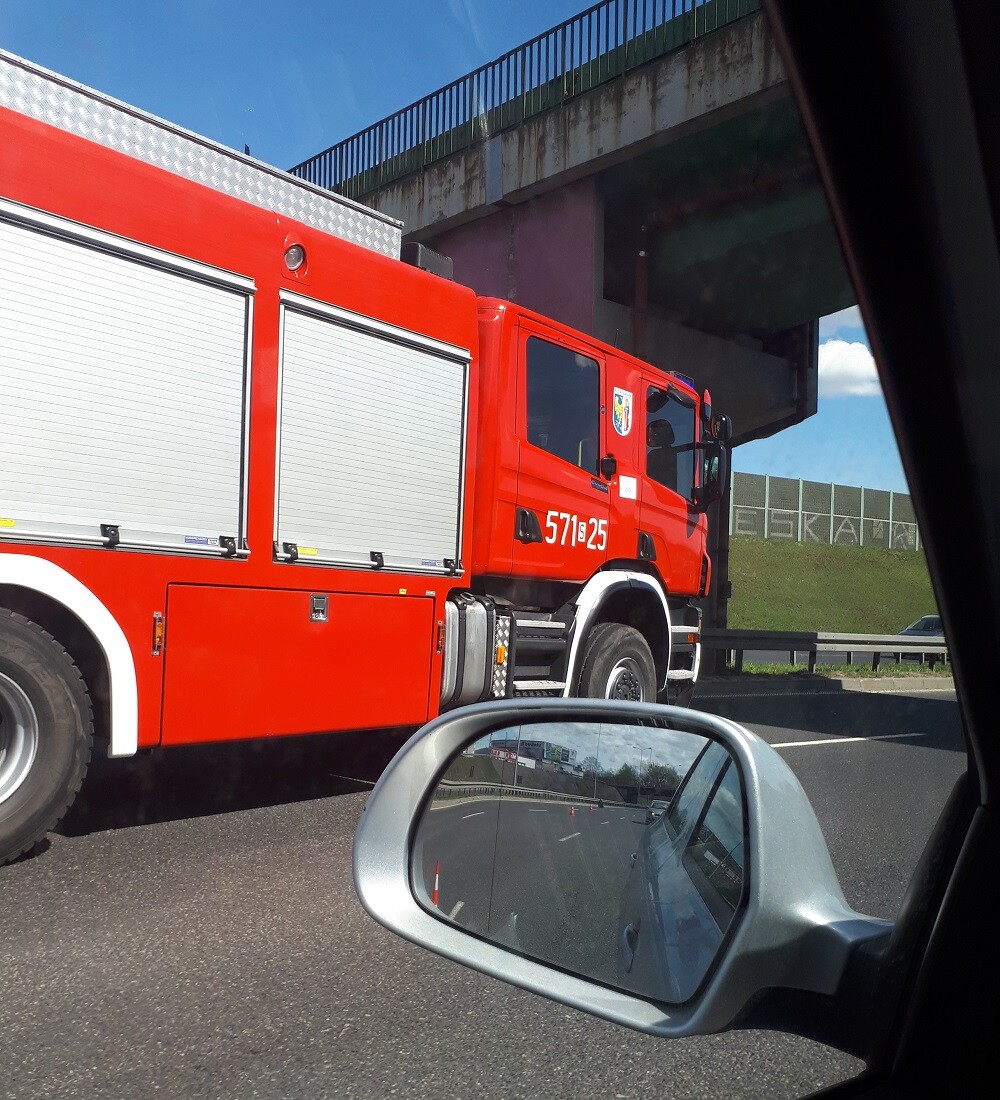 Na miejscu pracuje Straż Pożarna i Policja. Jeśli możecie, omijajcie tę trasę, tworzą się korki.