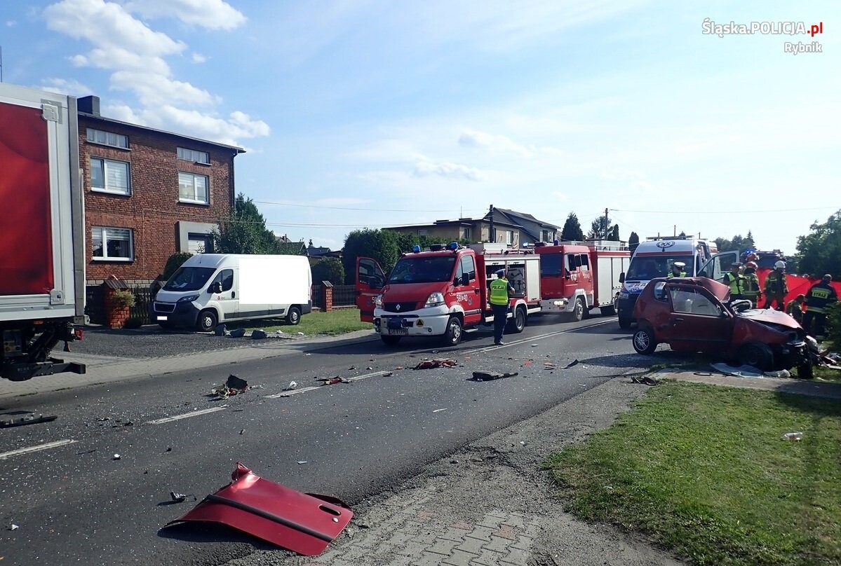 Rybniccy śledczy ustalają okoliczności i przyczyny tragicznego wypadku, do którego doszło w Świerklanach na ulicy Żorskiej. Ze wstępnych policyjnych ustaleń wynika, że 28-letni kierujący fiatem, z nieustalonych dotychczas przyczyn zjechał na przeciwny pas ruchu i zderzył się z ciężarówką. Na miejsce wezwano śmigłowiec LPR, jednak obrażenia, jakie odniósł kierujący osobówką, okazały się śmiertelne.
