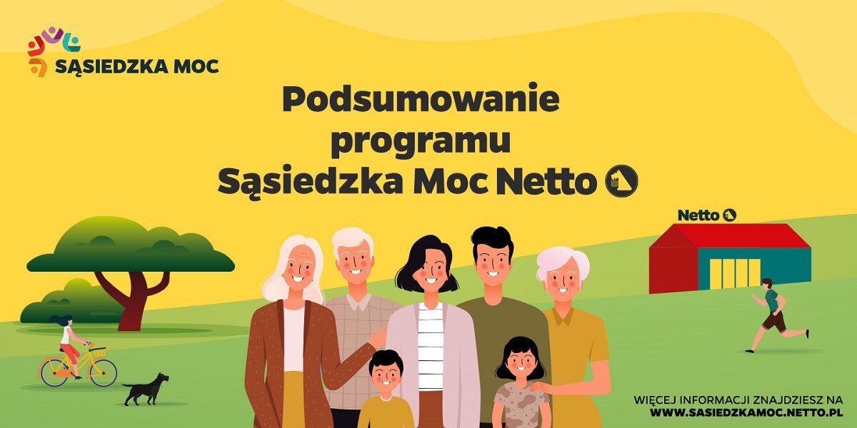 Rozstrzygnięto akcję „Sąsiedzka Moc” organizowaną przez sieć sklepów Netto. Akcja cieszyła się dużym zainteresowaniem od samego początku. Najpierw poprzez internetowy formularz należało zgłosić swoją inicjatywę, a następnie w dniach od 28 listopada do 31 grudnia 2022 roku w sklepach Netto odbyło się głosowanie na wybrane przez komisję projekty. W głosowaniu wybrano łącznie 50 projektów, w tym 45, które uzyskały dofinansowanie w kwocie 10 tys. zł oraz 5 ze zwiększonym dofinansowaniem 30 tys. zł.