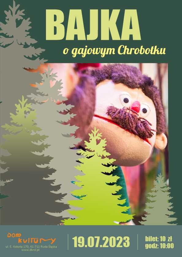 Spektakl, oparty na klasycznej bajce Vaclava Ctvrtek’a, przeniesie widzów w świat pełen magii i nauki. Gajowy Chrobotek, główny bohater opowieści, nauczy dzieci jak zachowywać się w lesie, dbać o zwierzęta i otaczającą przyrodę. Jego wierność i gotowość do obrony każdego stworzenia z pewnością wzbudzą podziw i zainteresowanie najmłodszych.