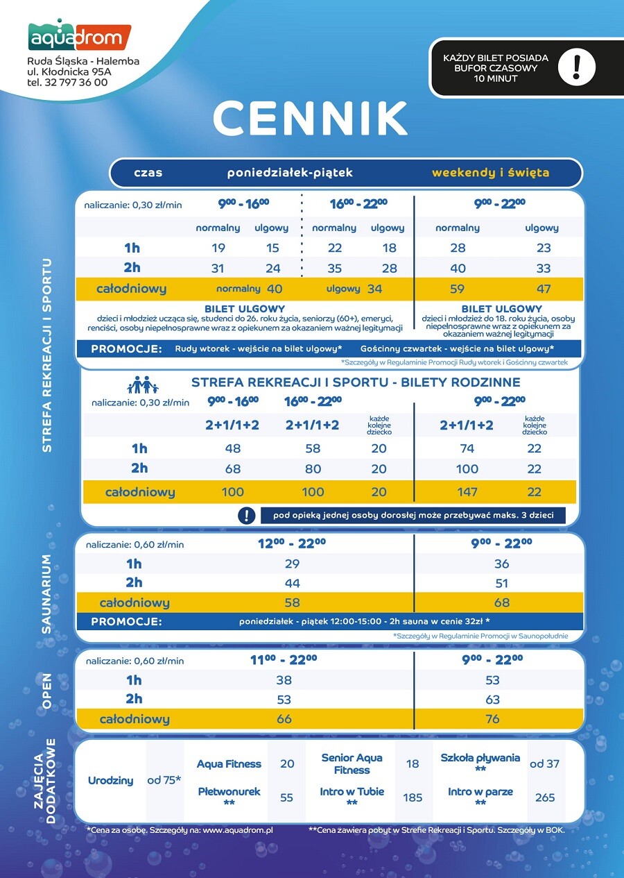 - w weekendy i święta natomiast zarówno Strefa Rekreacji i Sportu, jak i Saunarium otwarte są od 9:00.