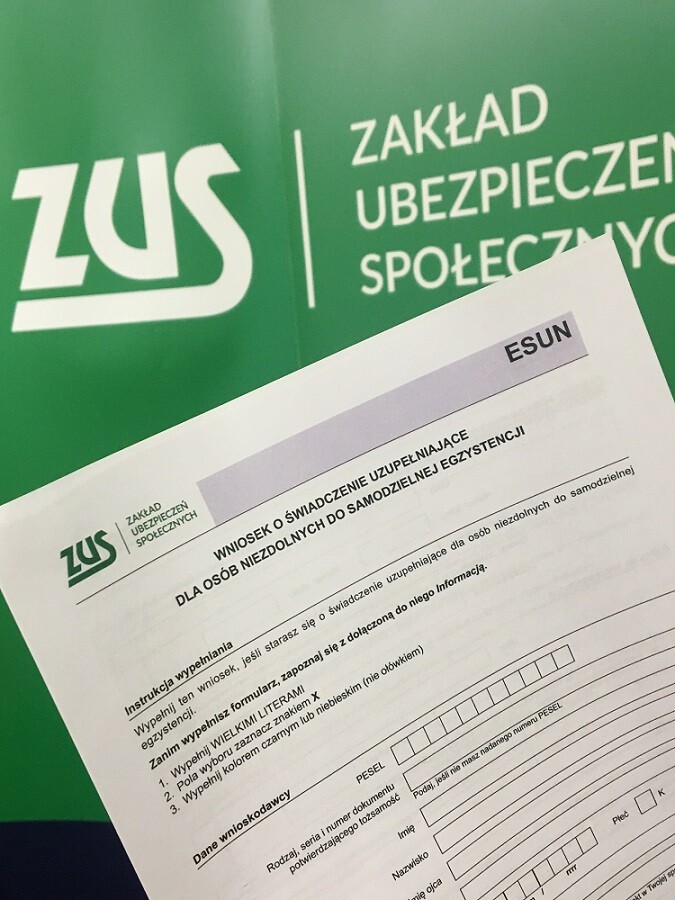 Aby otrzymać świadczenie uzupełniające dla osób niezdolnych do samodzielnej egzystencji, należy przede wszystkim złożyć wniosek – formularz ESUN, który jest dostępny na stronie internetowej, a także w każdej placówce ZUS. Wniosek może złożyć sam zainteresowany lub jego przedstawiciel ustawowy, pełnomocnik bądź opiekun faktyczny. Wniosek można też złożyć elektronicznie poprzez Platformę Usług Elektronicznych ZUS. Wystarczy mieć założone konto na PUE i dysponować certyfikatem kwalifikowanym lub darmowym profilem zaufanym ePUAP.