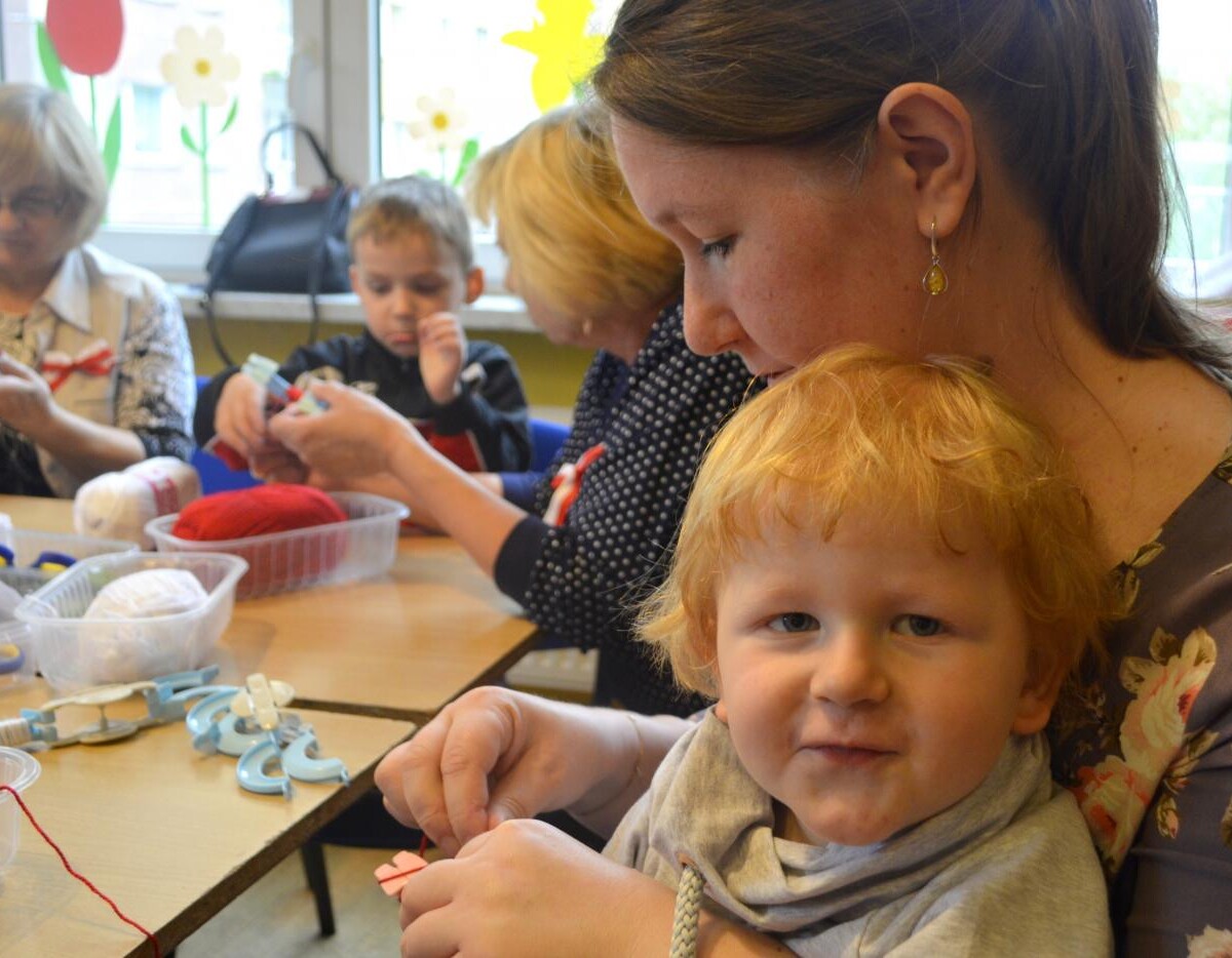 Zbliżające się święta narodowe były okazją do wesołego przygotowania kolorowych ozdób w narodowych barwach. Tym razem zajęcia dla dzieci były prowadzone przez wolontariuszy z Klubu Aktywnego Seniora. Po początkowych zabawach i pląsach dzieci brały udział w różnych aktywnościach.