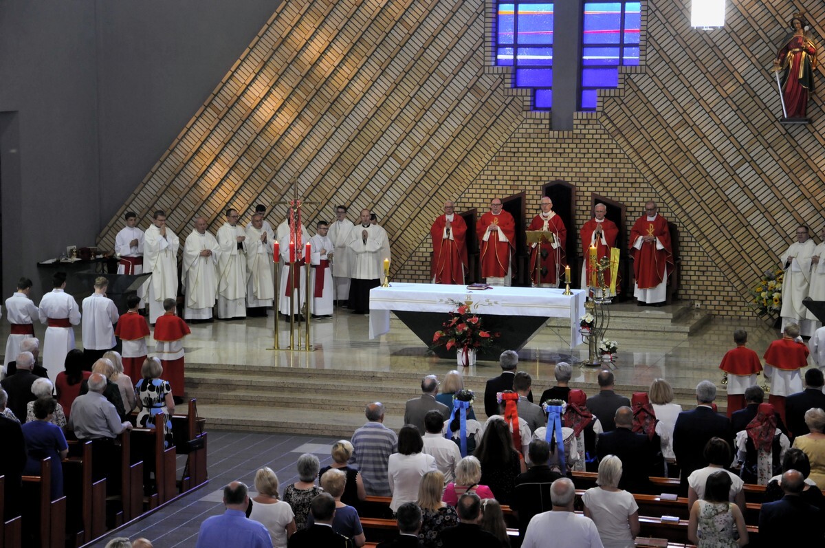 Następnie o godzinie 18 w kościele pw. św. Barbary odbyła się uroczysta msza święta, w której udział wziął abp metropolita katowicki Wiktor Skworc. Obrządkom towarzyszyły poczty sztandarowe, a także orkiestra oraz chór.