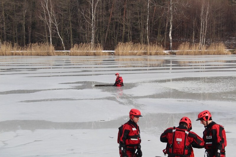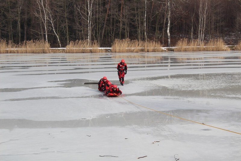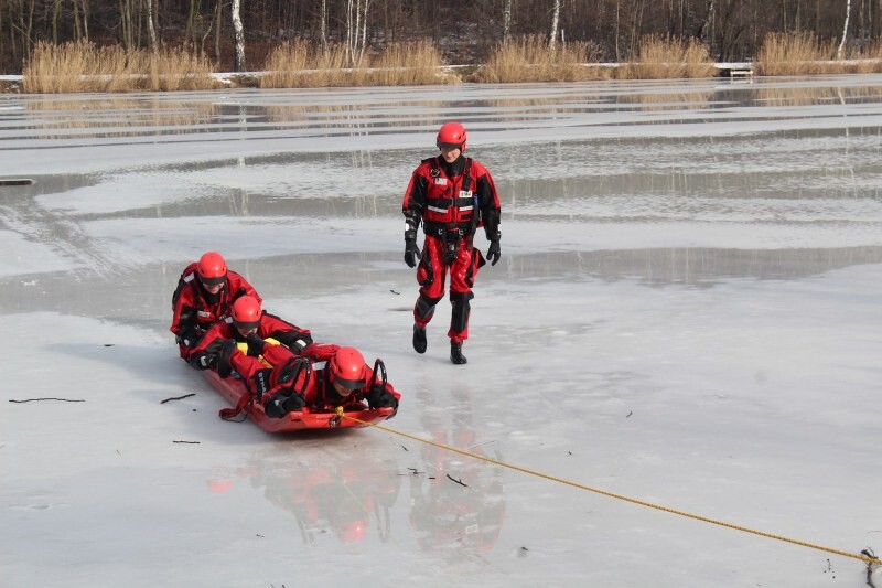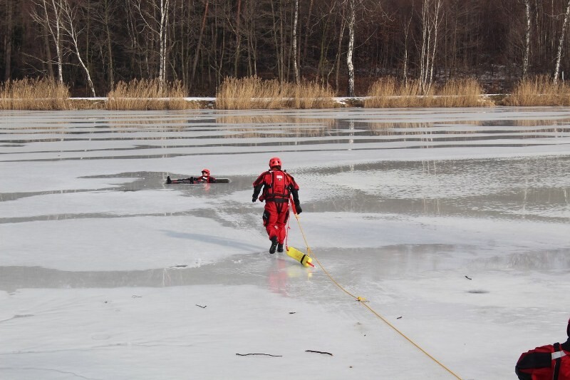 Scenariusz ćwiczeń obejmuje podejmowanie osoby z wody pod którą załamał się lód. Strażacy wyposażeni w suche skafandry, kamizelki oraz sanie lodowe muszą dotrzeć do poszkodowanego wyciągnąć go na brzeg i udzielić kwalifikowanej pierwszej pomocy. Całość zadania odbywa się przy asekuracji za pomocą liny z brzegu.