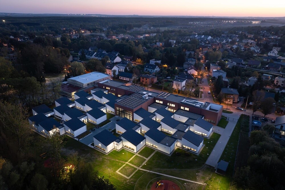 Stary, prefabrykowany budynek Szkoły Podstawowej nr 17 w Bielszowicach, wybudowany w czasach PRL-u, wymagał całkowitej wymiany. Ekstremalne warunki górnicze, wciąż wpływające na teren, sprawiły, że remont stał się niemożliwy. Zamiast tego, powstała koncepcja nowoczesnego, rozproszonego kampusu, który wpisuje się w wyzwania związane z dynamicznie zmieniającym się gruntem.