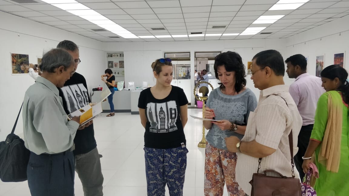 Zgłosiliśmy się w galerii. W zasadzie dzień wcześniej niż przewidywaliśmy. Na miejscu okazało się, że należy zaprosić osobiście władze galerii, sekretarza ds. kultury w ministerstwie rządu bengalskiego oraz kilka lokalnych znamienitości. Po tym, zainstalowaliśmy wystawę, w czym pomogli nam nasi przyjaciele Hindusi. Nastąpiło uroczyste otwarcie, z zapaleniem świec…