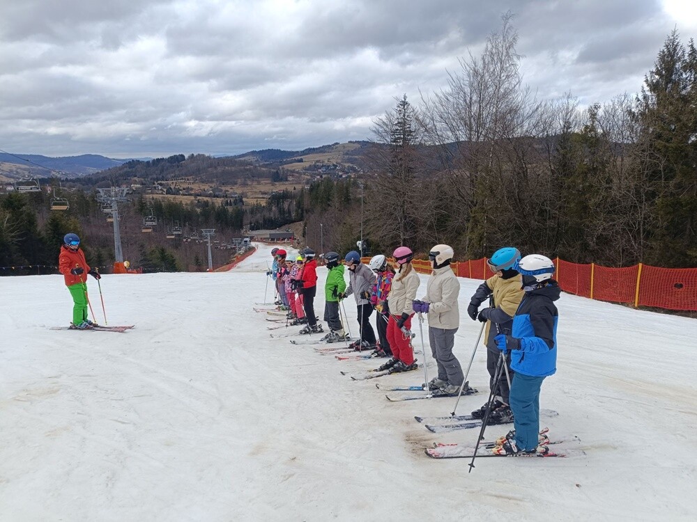 Spora grupa stawiała na nartach pierwsze kroki. Pod koniec tygodnia ich postępy były imponujące, a początkujący narciarze z dużą pewnością i zaangażowaniem zjeżdżali z samego szczytu. Wyjątkowy dzień, jakim był 29 lutego, uczniowie uczcili zjazdami w zabawnych przebraniach, nie brakowało śmiechu i świetnej zabawy. Ale obóz zimowy to nie tylko atrakcje na stoku, na uczniów czekały także spacery po okolicy, ognisko z pieczeniem kiełbasek, czas spędzony na graniu w piłkarzyki, bilarda i ping ponga oraz zajęcia artystyczne. Wyjazd zakończył się zabawą w tyskim Parku Wodnym.