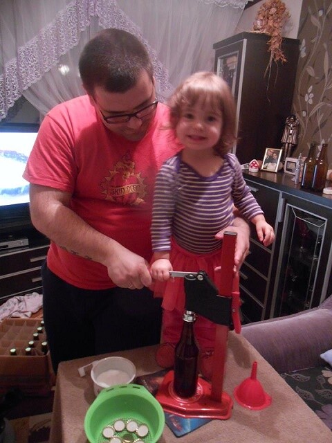Rzeczywiście moja dwuletnia córka bardzo lubi mi pomagać. Pozwalam jej na coraz więcej czynności. Ostatnio razem butelkowaliśmy, a ona sama dosypywała do butelek cukier. Żona również często pomaga, głównie w pierwszym etapie warzenia. Choć ostatnio przeszkadza jej coraz większy brzuszek. Niedługo bowiem będziemy warzyć we czwórkę!
