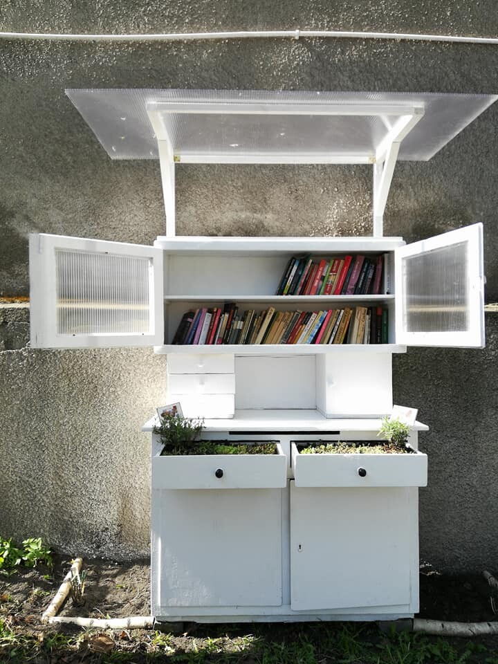 - Już nie tylko nie marnujemy ubrań i jedzenia, ale także przeczytanych książek. Obok #Jadłodzielnii, przy ulicy Oświęcimskiej 123, postawiliśmy byfyjową #Książkodzielnię, gdzie można zostawić przeczytane już książki bądź zabrać ze sobą książki tam pozostawione - mówił Rafał Wypior, prezes stowarzyszenia. - Byfyj, który znalazłem ze znajomą, miał trafić na wysypisko śmieci, jednak postanowiłem nadać mu drugie życie, czy też, jak mówią mieszkańcy Kochłowic – zagwarantować godziwą emeryturę. Z pieniędzy pozyskanych ze zrzutki, która dzięki sympatykom Stowarzyszenia zakończyła się już w trzy dni, udało się odnowić mebel. Po dobudowaniu daszku, wymianie szyb, upiększeniu szuflad roślinami, odmalowaniu oraz zabezpieczeniu przed gniciem, pozostało jedynie przetransportować byfyj w docelowe miejsce - dodał.