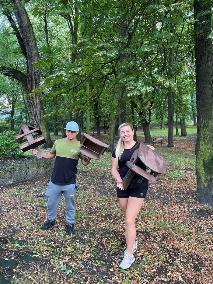 W Parku, oprócz karmników dla wiewiórek i ptaków, pojawiły się również budki lęgowe. Twórcą budek dla wiewiórek i ptaków jest mieszkaniec naszego miasta, Szczepan Błaziński.