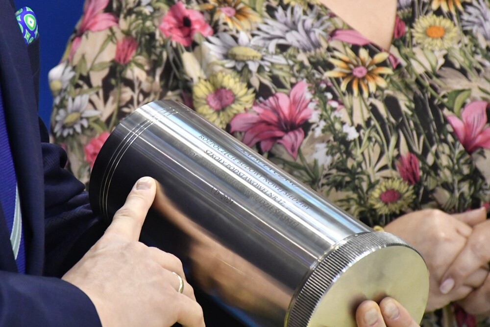 Budowa nowej siedziby Szkoły Podstawowej nr 17 idzie pełną parą! Dziś w placówce odbyła się uroczystość wmurowania Kapsuły Czasu, do której włożono m.in. listy uczniów, filmy, nagrania i zdjęcia.