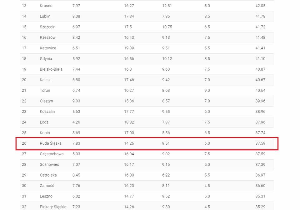 - miejsce 26. Ruda Śląska