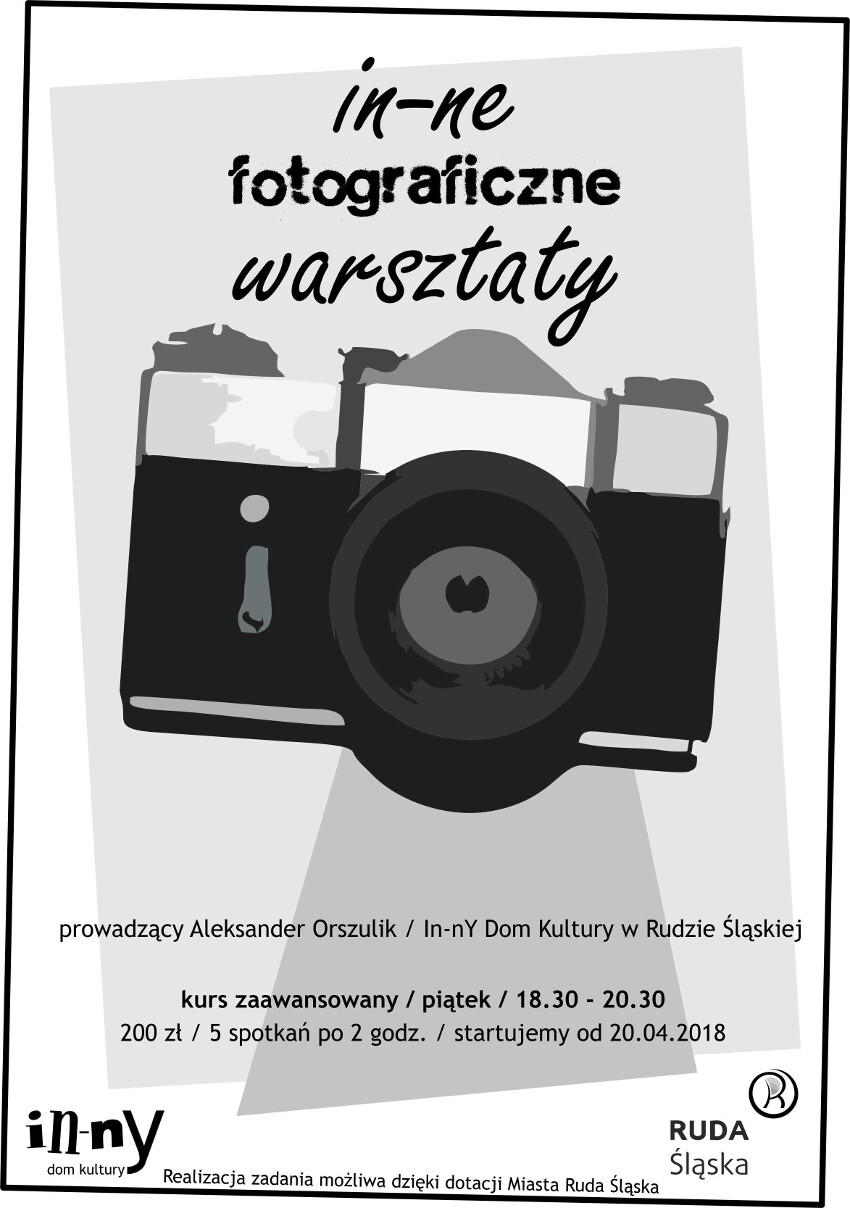 Serdecznie zapraszamy na warsztaty fotograficzne (5 spotkań) w In-nYm Domu Kultury w piątki w godz. 18.30 - 20.30, odpłatność 200 zł.