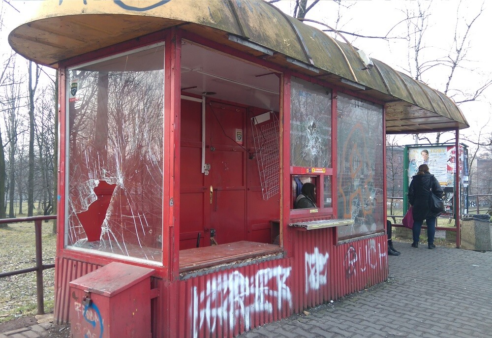 Przechodząc ulicą Odrodzenia, bądź czekając na przystanku na autobus, możemy zaobserwować "dzieło" wandalizmu, które jest sporym zagrożeniem dla przechodniów. To wiata przystankowa, a dokładnie dołączona do niej budka, w której funkcjonował niegdyś kiosk. Jest zniszczona przez okolicznych wandali - a dewastacja, jak mówią mieszkańcy, odbywała się etapowo - najpierw wyrywano rolety antywłamaniowe, powybijano szyby, później zdewastowano wnętrze kiosku. Teraz mieszkańcy borykają się z przykrą wizytówką Wirku, którą podczas postoju każdego autobusu oglądają podróżni. Nie tylko wygląd wiaty martwi mieszkańców, ale zagrożenie, jakie stwarza ten obiekt - ostre krawędzie wybitych szyb, odłamki szkła na ziemi, wystające elementy konstrukcji są bardzo niebezpieczne.