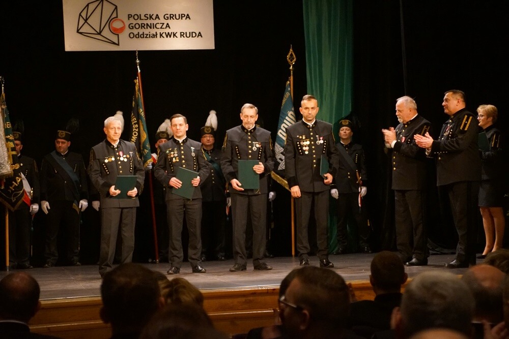 Po przemówieniach najbardziej zasłużeni górnicy zostali odznaczeni medalami i szpadami, które są symbolem wolności stanu górniczego. W tym roku wyróżnionych zostało: 287 pracowników, którzy kopalni poświęcili co najmniej 25 lat. 81 górników nabyło prawo do noszenia honorowej szpady górniczej. 114 pracowników otrzymało odznakę "Zasłużony dla kopalni Ruda". Odznakę "Zasłużony dla górnictwa Rzeczpospolitej” otrzymało 36 osób. Wyższe stopnie górnicze otrzymało 406 osób.
