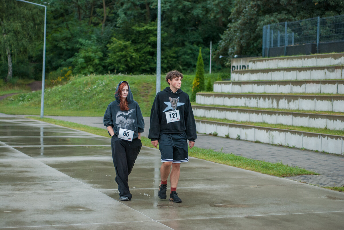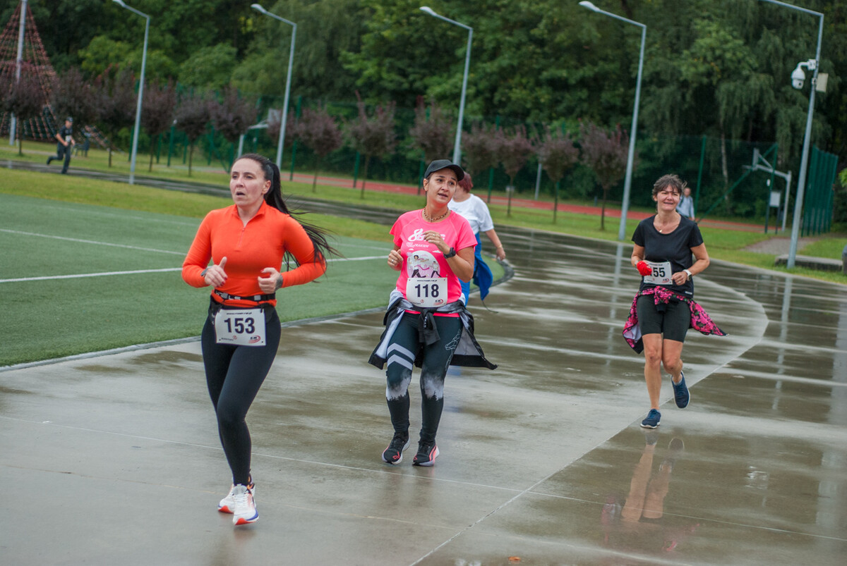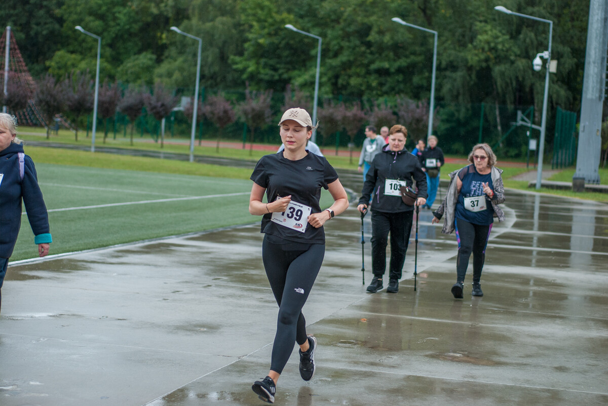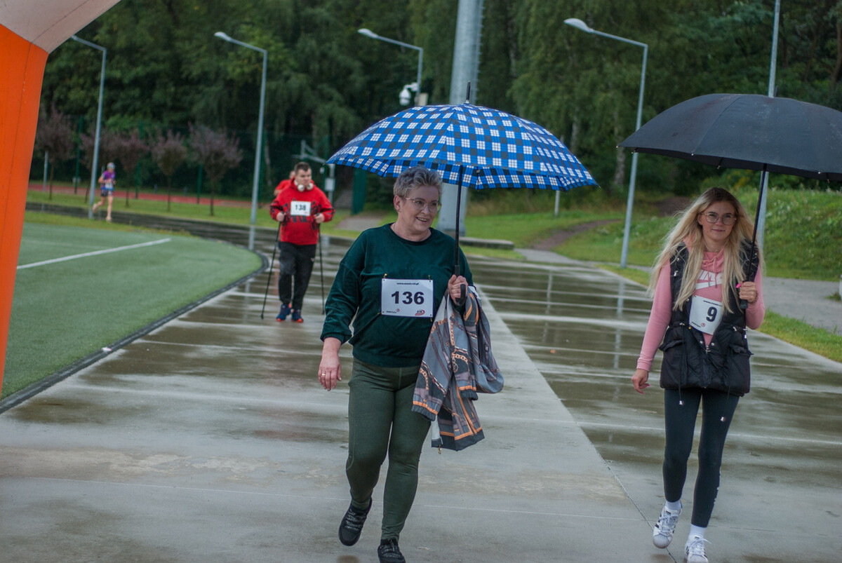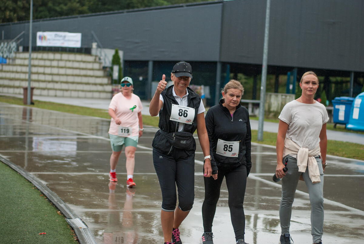 Choć z nieba niemal cały czas kropiło (raz mocniej, raz słabiej), na starcie pojawiło się około 150 uczestników (na 160 zapisanych). Około 9:25 kolorowy peleton biegaczy ruszył w trasę wokół Burloch Areny oraz pobliskiego parku. Niektórzy biegiem, inni truchtem, marszem, spacerem, z kijkami lub na wózku. I z uśmiechami na twarzy.