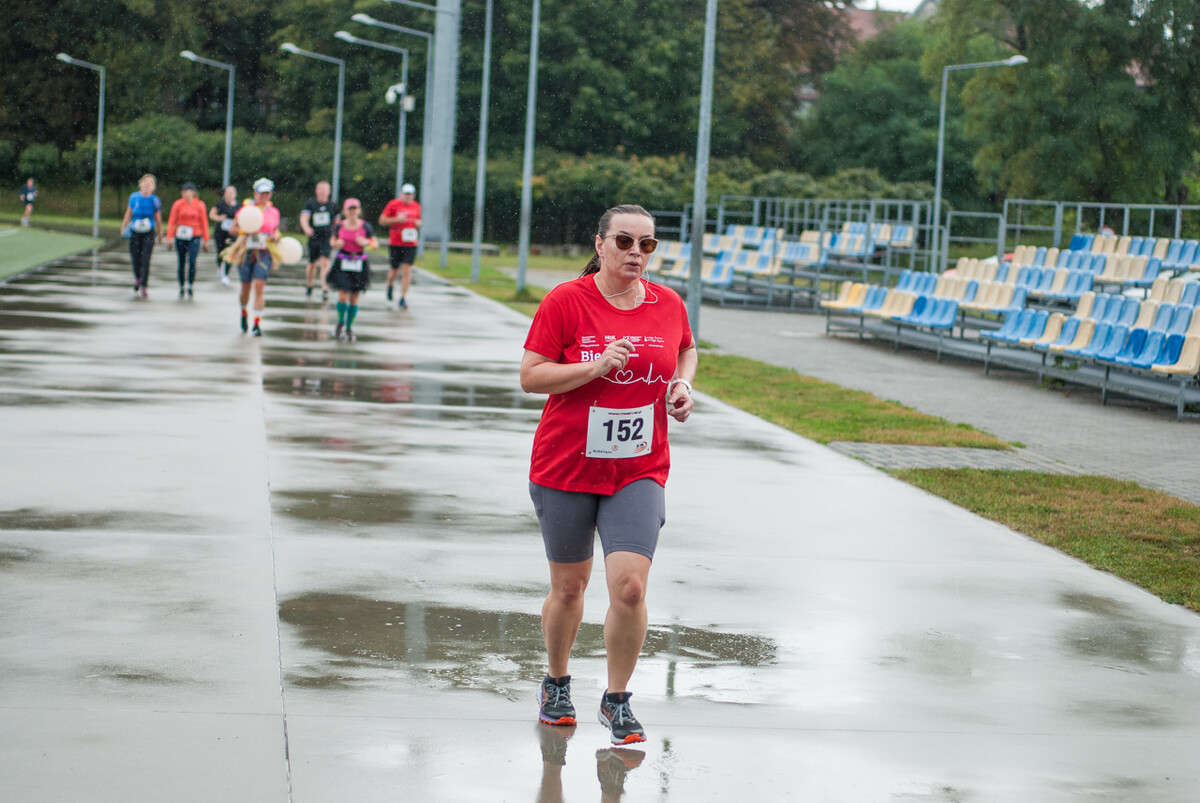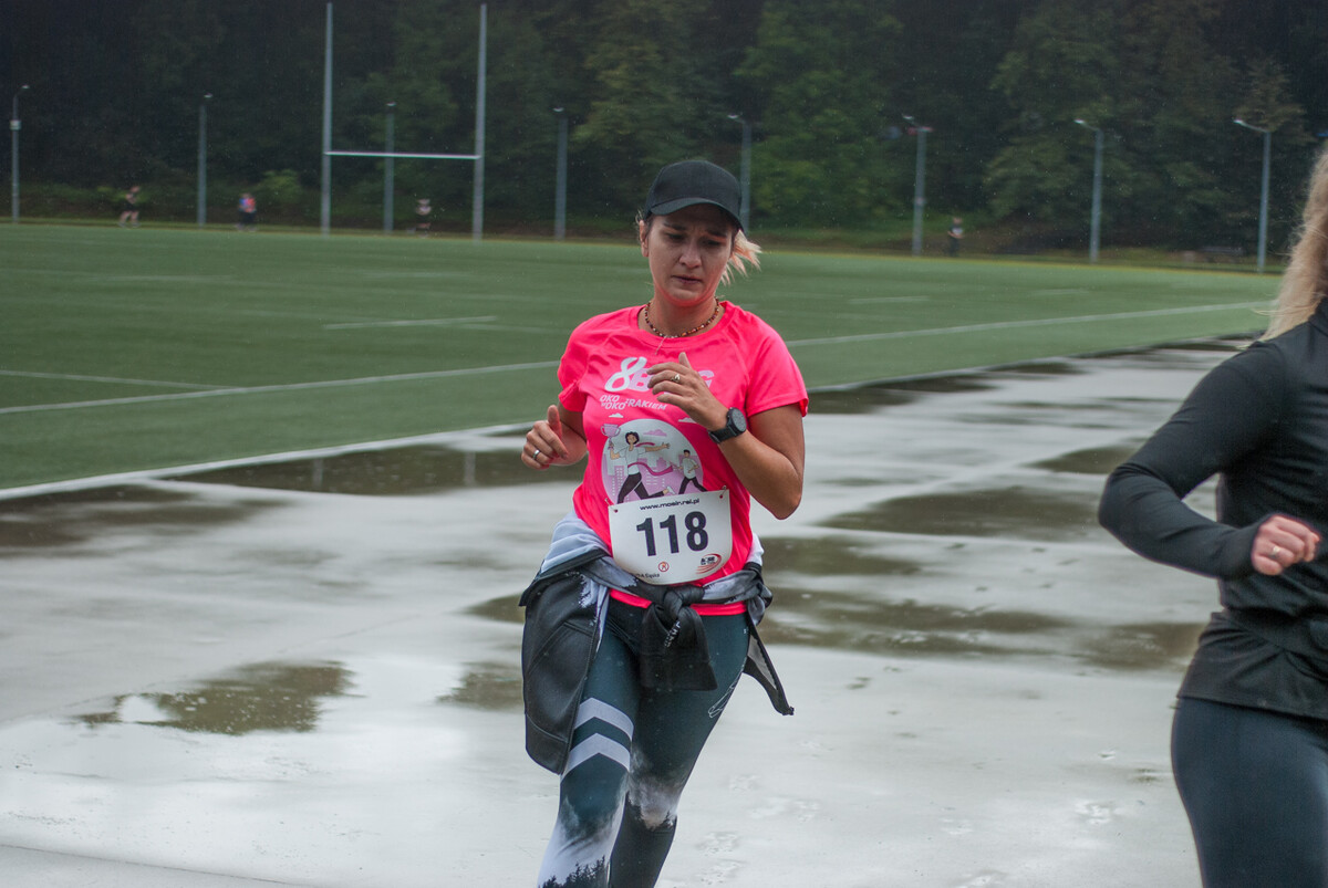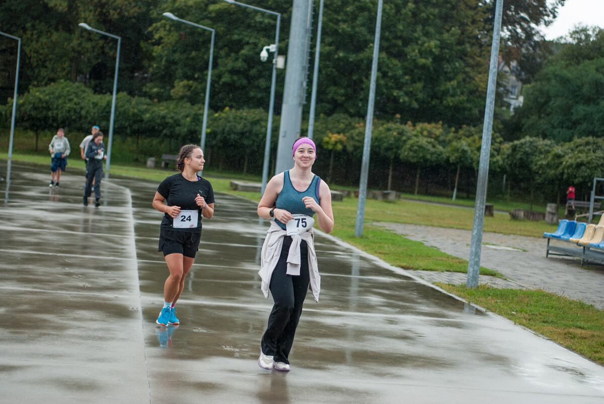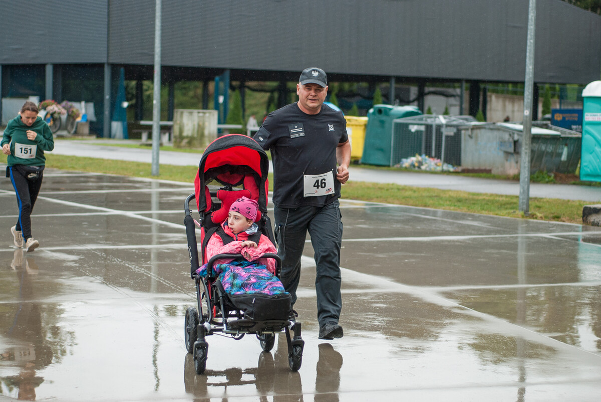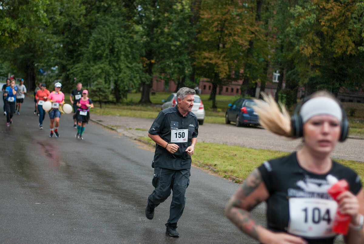 Choć z nieba niemal cały czas kropiło (raz mocniej, raz słabiej), na starcie pojawiło się około 150 uczestników (na 160 zapisanych). Około 9:25 kolorowy peleton biegaczy ruszył w trasę wokół Burloch Areny oraz pobliskiego parku. Niektórzy biegiem, inni truchtem, marszem, spacerem, z kijkami lub na wózku. I z uśmiechami na twarzy.