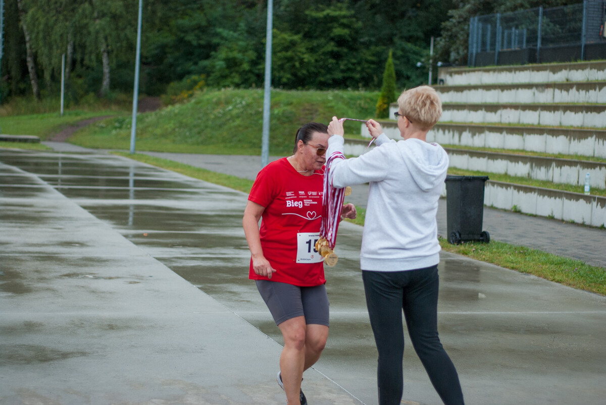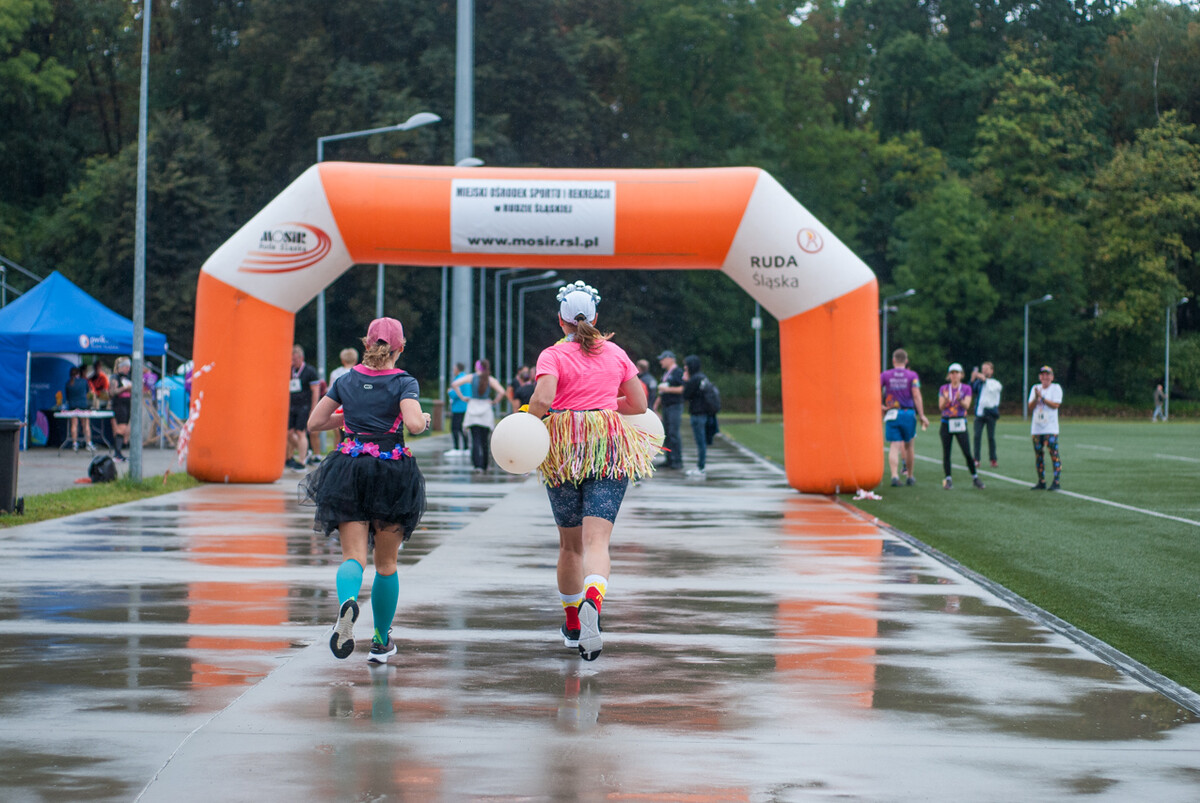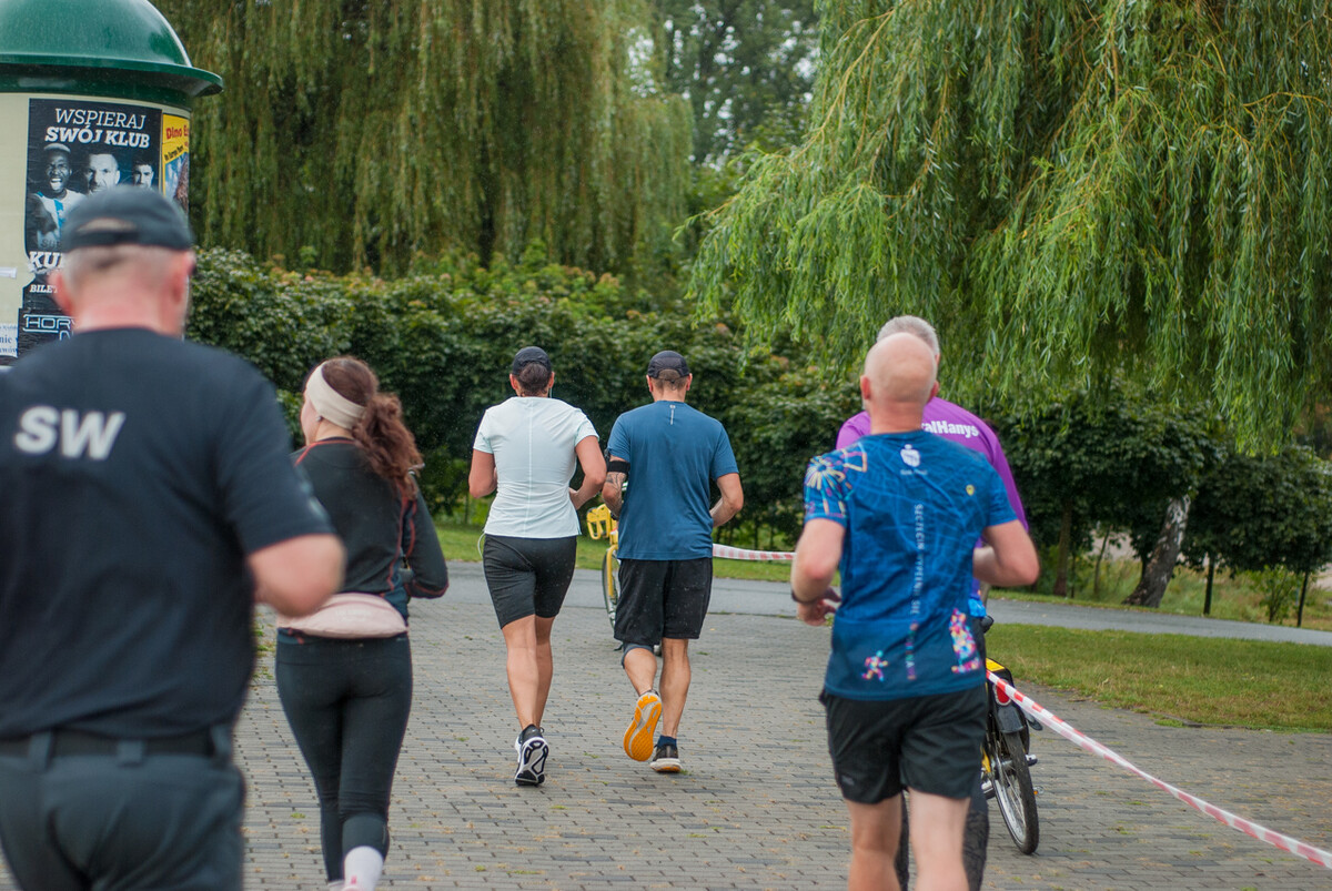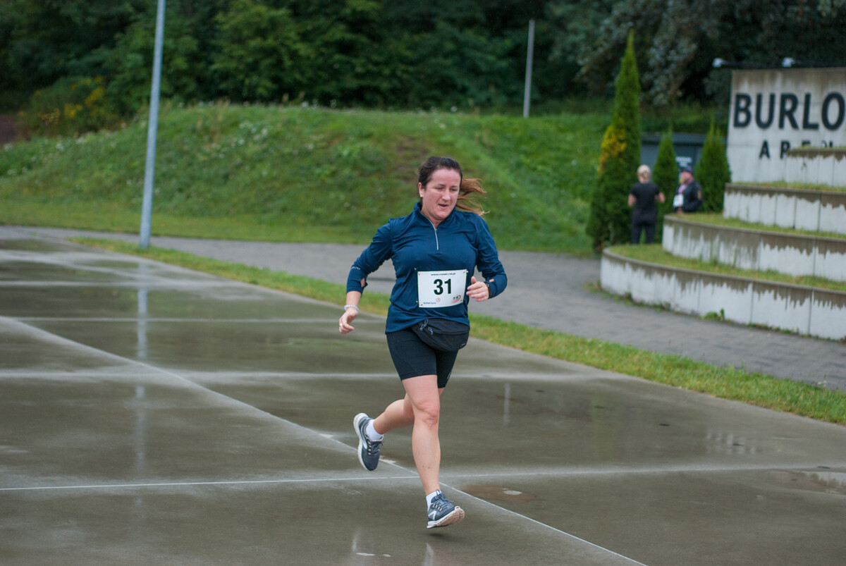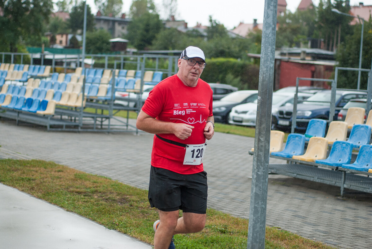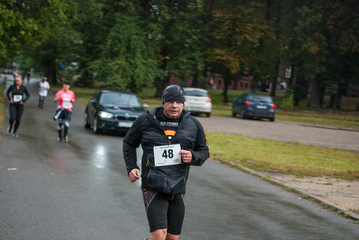 Choć z nieba niemal cały czas kropiło (raz mocniej, raz słabiej), na starcie pojawiło się około 150 uczestników (na 160 zapisanych). Około 9:25 kolorowy peleton biegaczy ruszył w trasę wokół Burloch Areny oraz pobliskiego parku. Niektórzy biegiem, inni truchtem, marszem, spacerem, z kijkami lub na wózku. I z uśmiechami na twarzy.