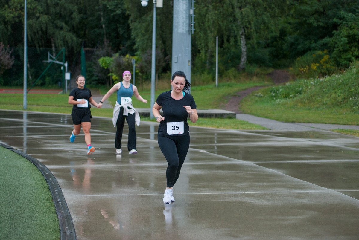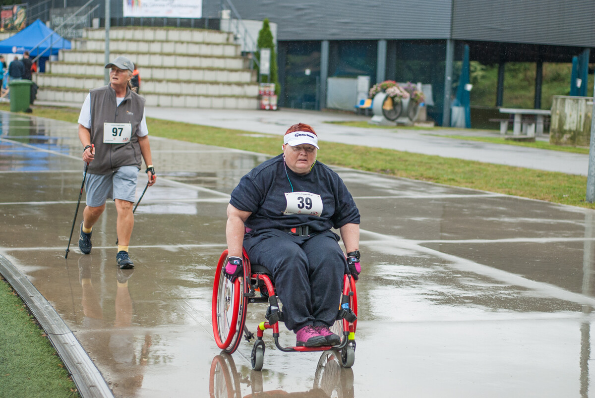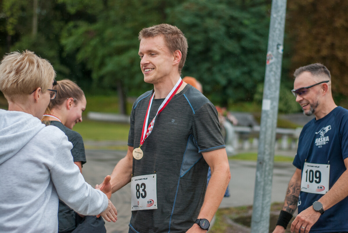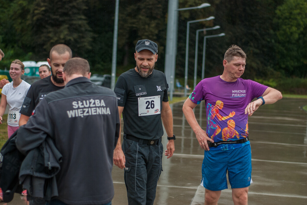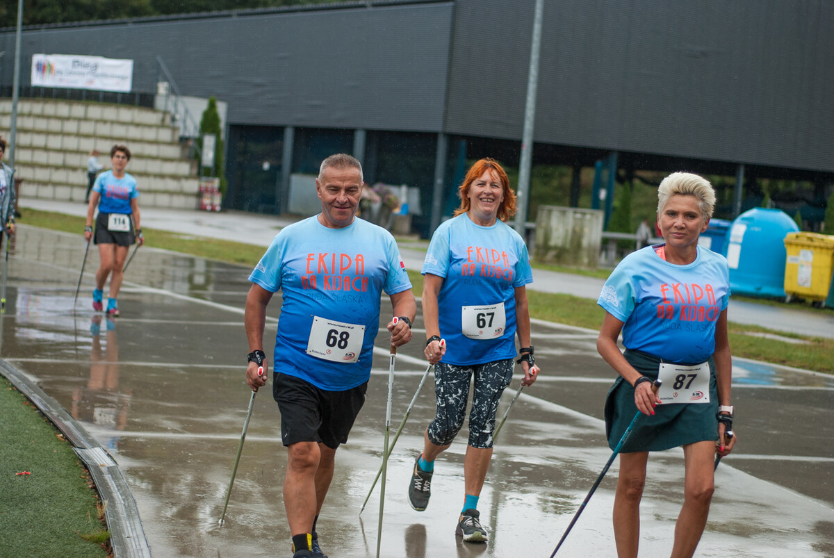 Choć z nieba niemal cały czas kropiło (raz mocniej, raz słabiej), na starcie pojawiło się około 150 uczestników (na 160 zapisanych). Około 9:25 kolorowy peleton biegaczy ruszył w trasę wokół Burloch Areny oraz pobliskiego parku. Niektórzy biegiem, inni truchtem, marszem, spacerem, z kijkami lub na wózku. I z uśmiechami na twarzy.