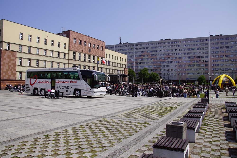 Na płycie placu Jana Pawła II pojawiły się dzisiaj majestatyczne jednoślady i trójkołowce, właścicielom których przyświeca tego dnia jeden cel – przyciągnąć w to miejsce jak najwięcej osób i zachęcić do oddania krwi.