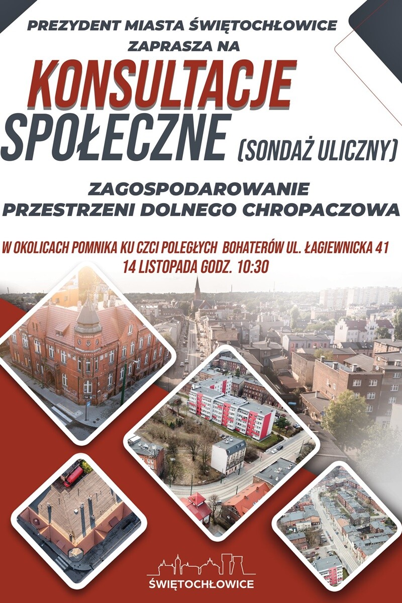 Już od 12 listopada świętochłowiczanie będą uczestniczyć w spotkaniach w ramach konsultacji społecznych. Podczas konsultacji zostaną poruszone tematy związane z terenami zielonymi w mieście, polityką mieszkaniową, zagospodarowaniem przestrzennym Chropaczowa oraz kształceniem zawodowym w kontekście rynku pracy. Każdy z tych tematów zostanie omówiony w konkretnym dniu.