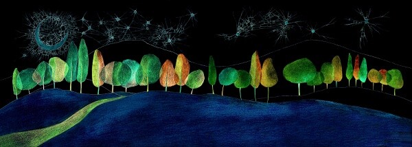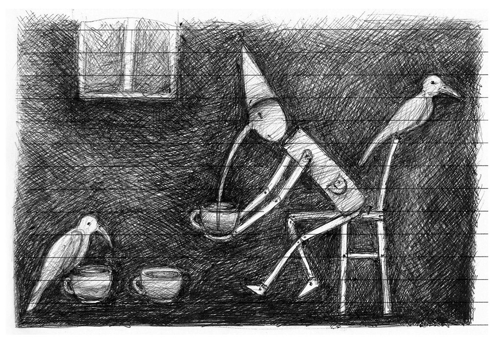 Nie mam pojęcia, skąd to się bierze! Pamiętam, że „Księżyc” był pierwszy jeżeli chodzi o „mozaikowe prace” i dał początek całej serii i dalszym pomysłom. Czasem mam cały projekt w głowie i siadam, robiąc coś, co sobie wymyśliłam (nigdy nie wychodzi identycznie), ale najczęściej wygląda to w ten sposób, że biorę długopis lub ołówek i po prostu rysuję, nie wiedząc jeszcze, co z tego wyniknie. Wszystkie postacie powstały przypadkiem. Bywa, że jakieś polubię i robię cały cykl.