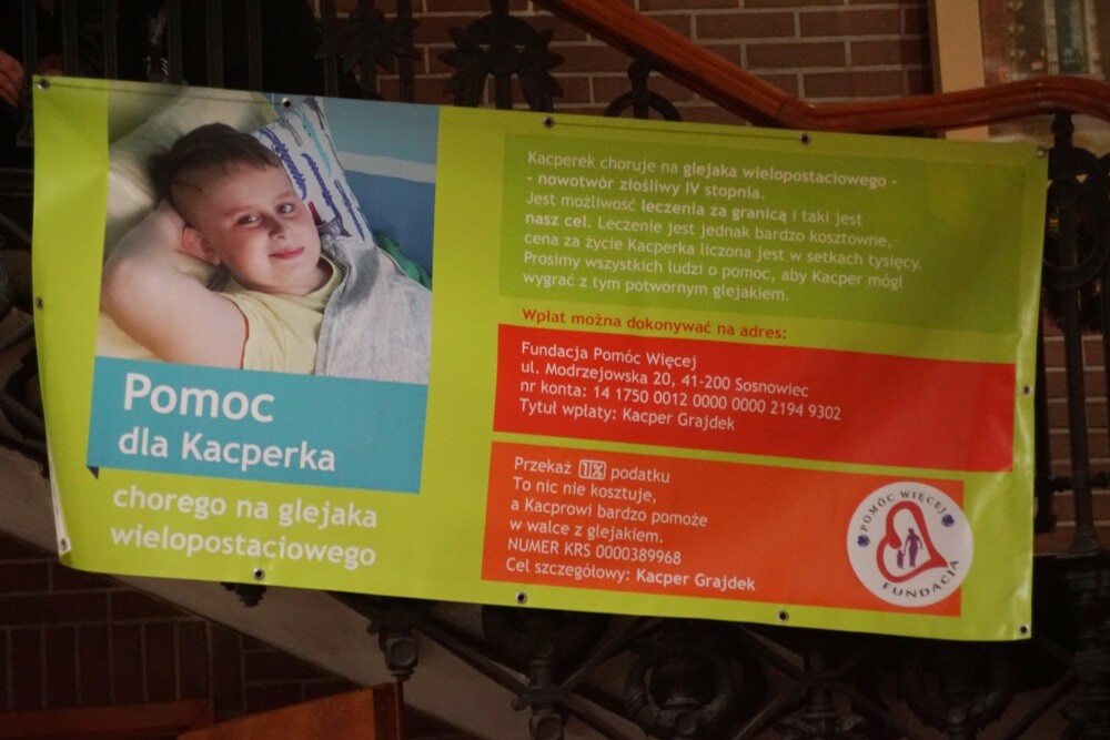 - Kacperek jest uczniem naszej szkoły. Niestety nie zdążył rozpocząć nauki w 2 klasie, ponieważ w wakacje zdiagnozowano u niego glejaka. Wszystkie osoby związane z naszą szkołą starają się zrobić, co tylko mogą, by wesprzeć Kacperka i jego rodzinę – mówiła Anna Sekta, dyrektor placówki. – Dzisiaj zorganizowaliśmy koncert, podczas którego zaprezentują się m.in.: uczniowie naszej szkoły oraz zaproszeni goście. Cały zysk z imprezy zostanie przeznaczony na dalsze leczenie Kacperka. Mamy nadzieję, że już niedługo wróci do naszej szkolnej rodziny – dodała.
