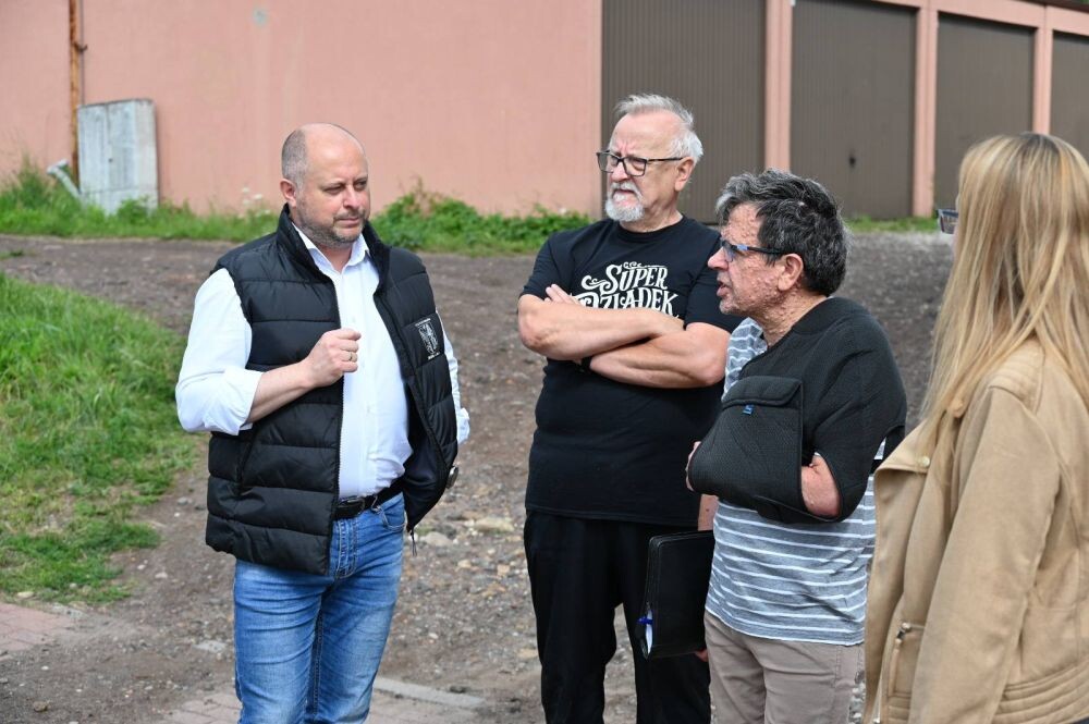 Właściciele garaży przy ulicy Cynkowej w Czarnym Lesie zgłaszali problem z drogą dojazdową, a szczególnie ze zjazdem na ulicę Cynkową. Wskazują, że podczas opadów jest on regularnie wypłukiwany, co powoduje tworzenie się wyrw i nanoszenie kamieni na jezdnię. 18 lipca na miejsce udali się prezydent Michał Pierończyk, pani prezes MPGM TBS Sp. z o.o oraz pracownicy spółki, aby ocenić skalę problemu.