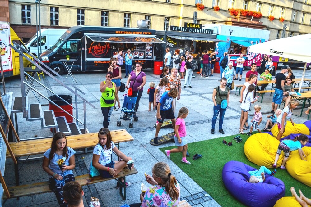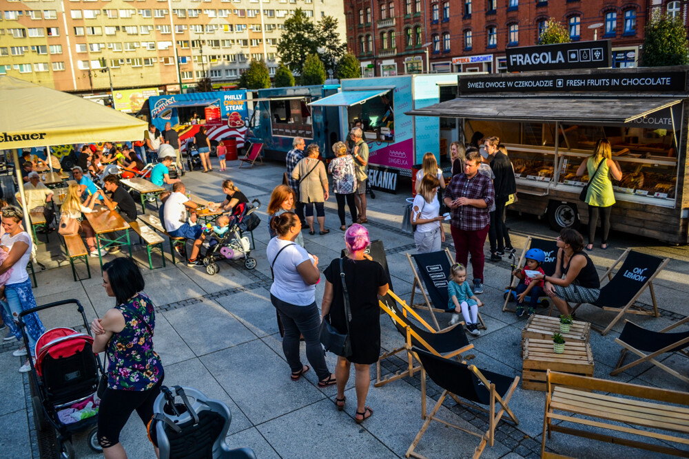 Muzyka na żywo (DJ), około dziesięciu pojazdów serwujących ciekawe potrawy i spora strefa z parasolami. Znajdziemy tam nie tylko frytki i burgery, ale i pierożki dim sum, kuchnię meksykańską czy owoce w czekoladzie i gofry.